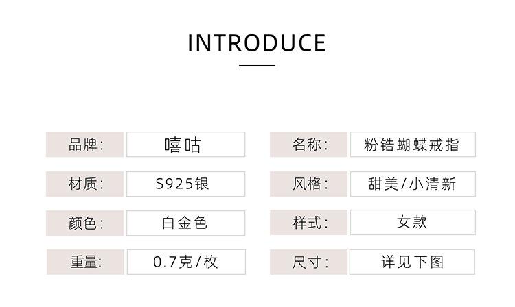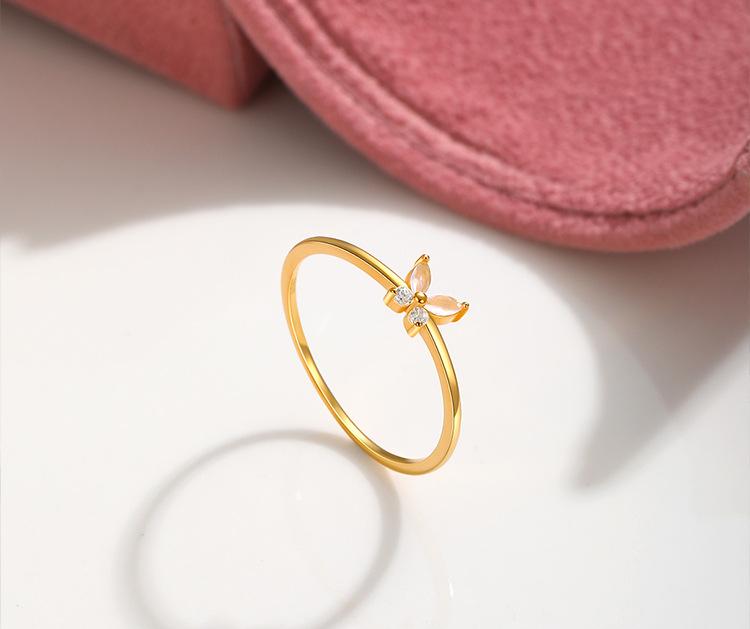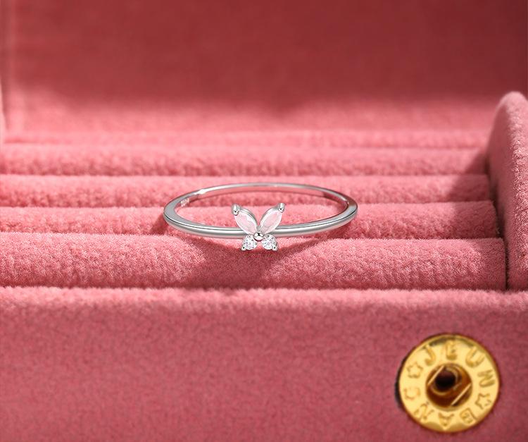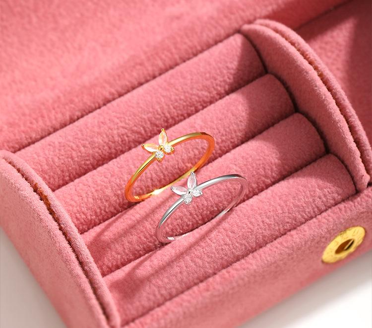 Xi Gu J0342 S925 Anillo de mariposa de circonio y plata, estilo coreano, anillo dulce y fresco, anillo de dedo Mori simple