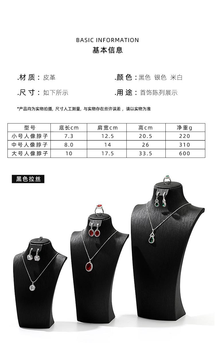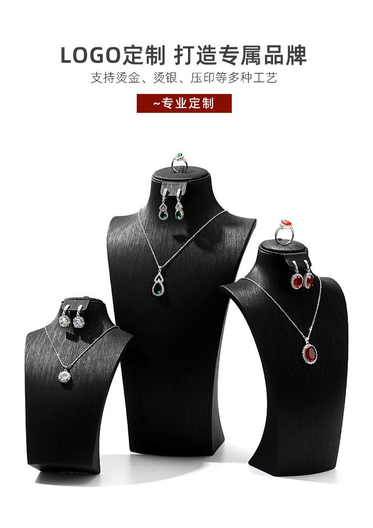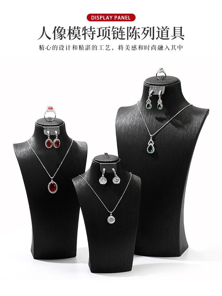 Exhibición de collar con colgante de cuero cepillado de PU, soporte de exhibición de joyería, modelo de cuello vertical, estante de joyería al por mayor