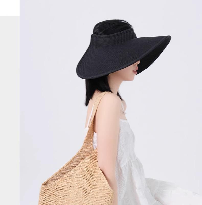 Sombrero de paja de ala ancha para playa, protector solar, con copa hueca, para verano, ideal para vacaciones y protección UV