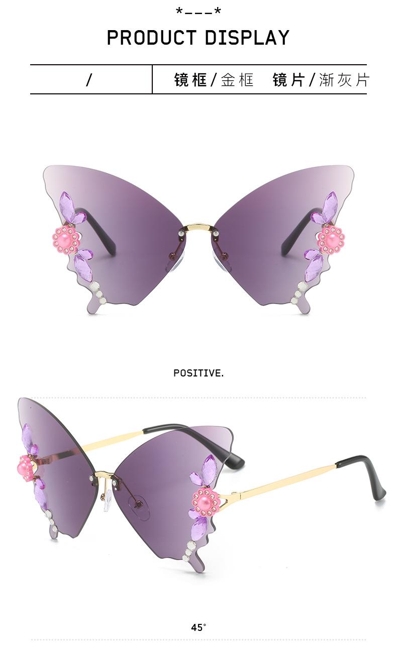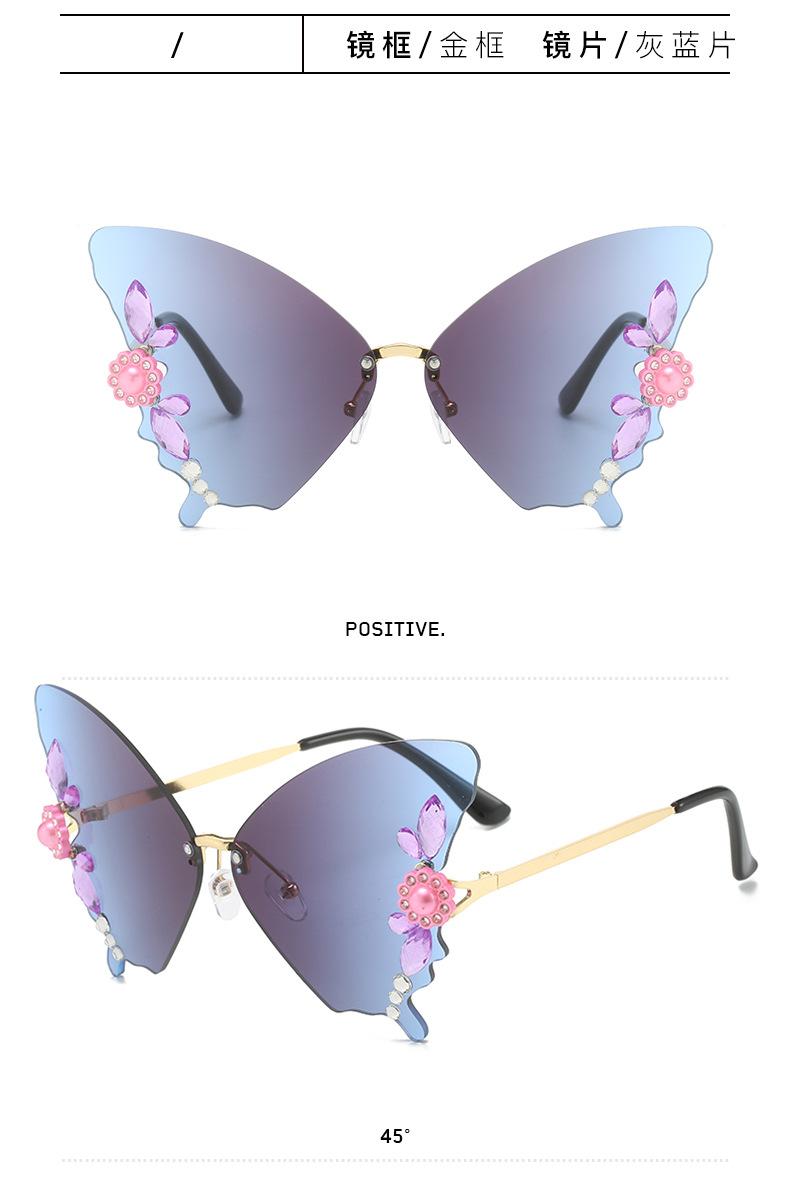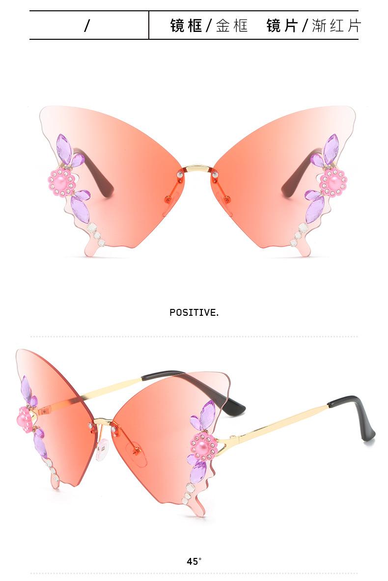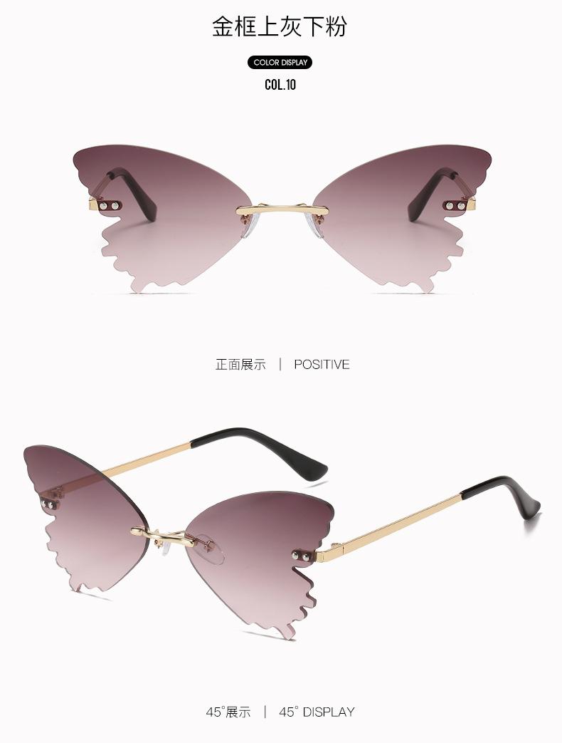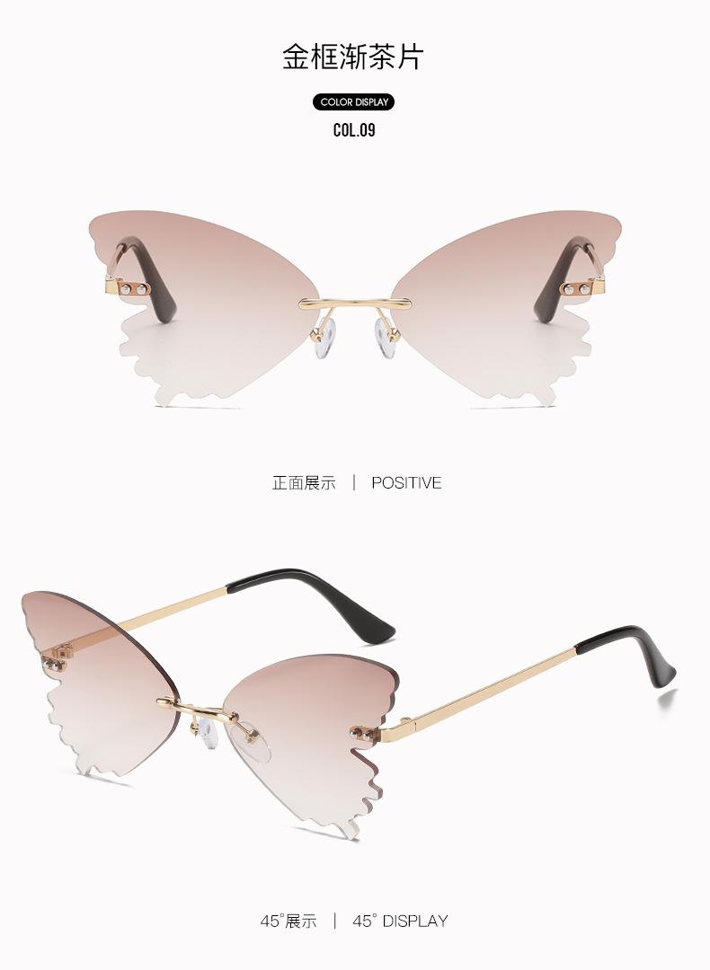 Gafas de sol transfronterizas sin marco, con borde cortado, modernas, con degradado de mariposa, populares en Internet, del mismo estilo, para fiestas.