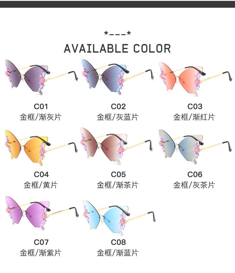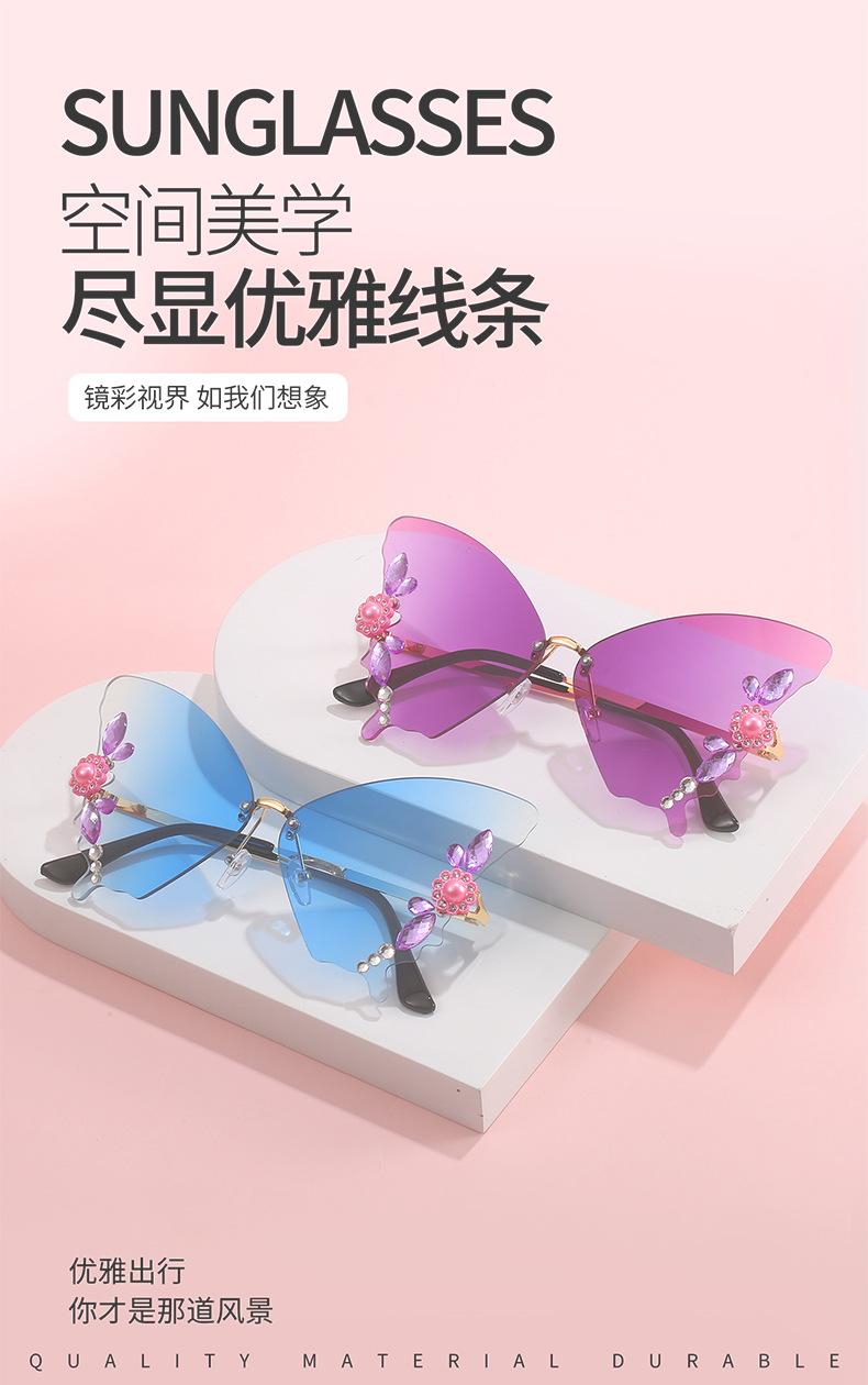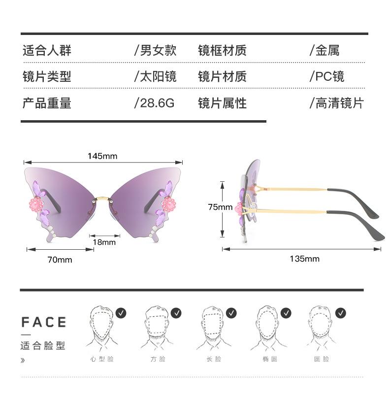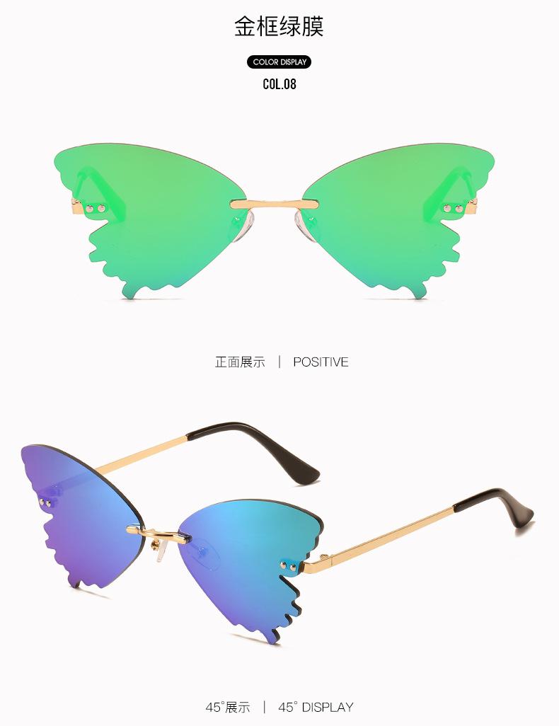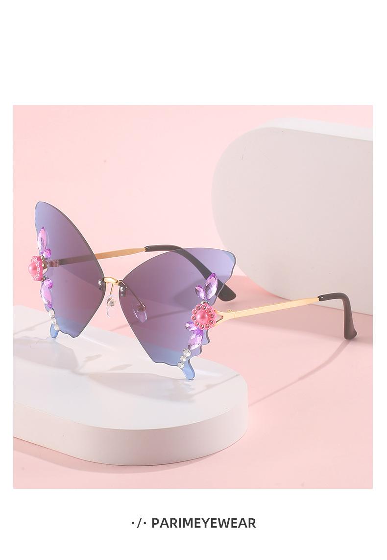 Gafas de sol transfronterizas sin marco, con borde cortado, modernas, con degradado de mariposa, populares en Internet, del mismo estilo, para fiestas.