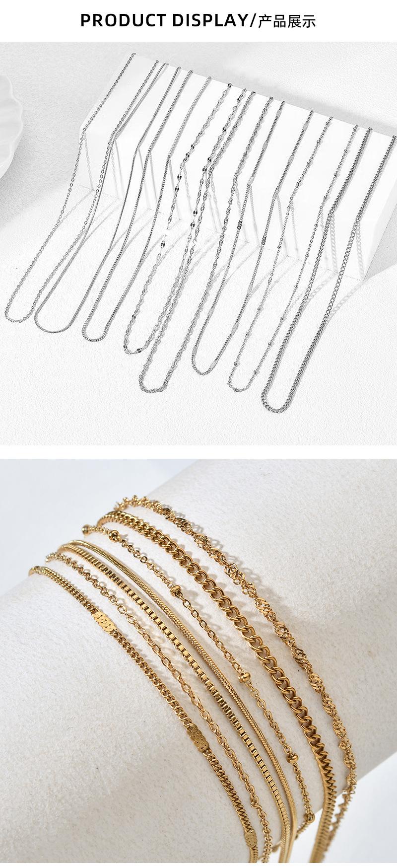 BXGLT002-Golden Water Wave Chain, BXGLT003-gold pressed chain, BXGLT001-gold O-chain, BXGLT004-golden lip chai...