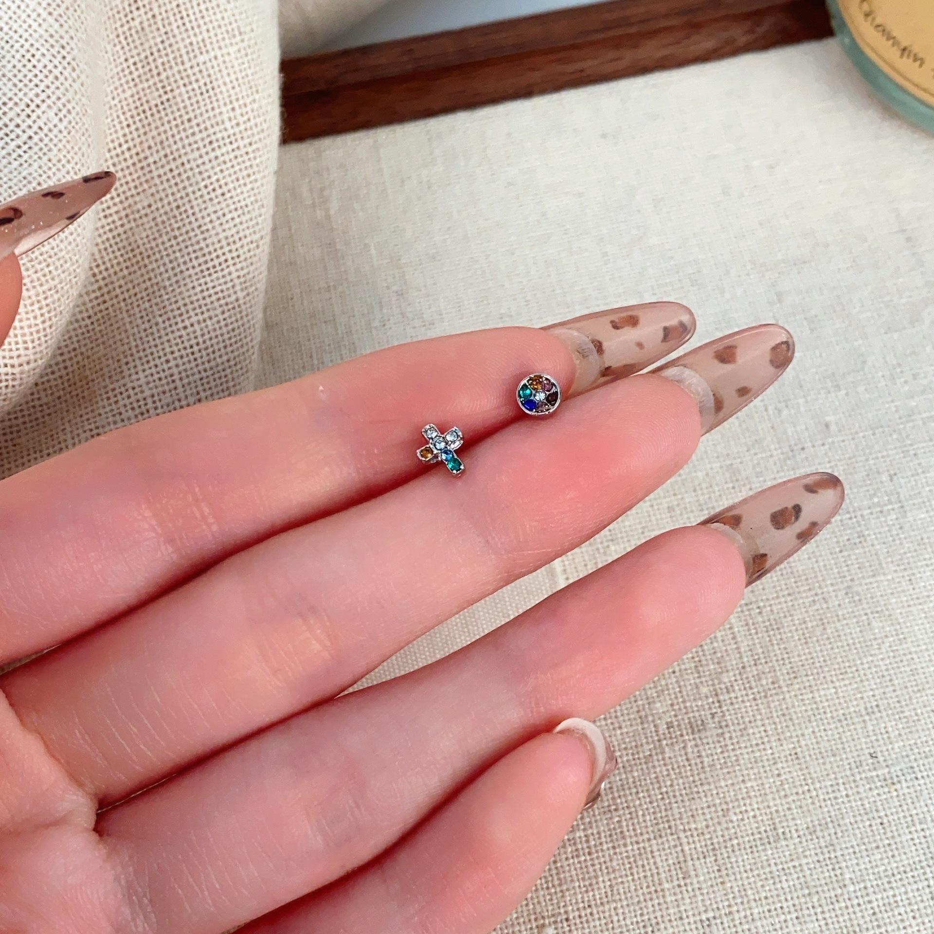 Pendientes redondos de color minimalista con diseño de nicho cruzado y hebilla de tornillo, accesorios distintivos de hip hop.