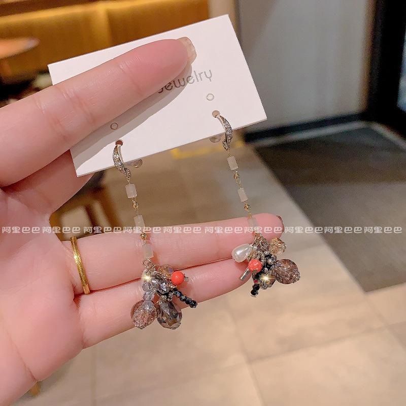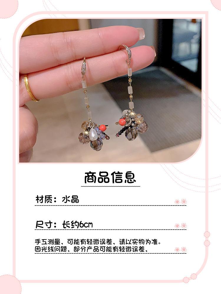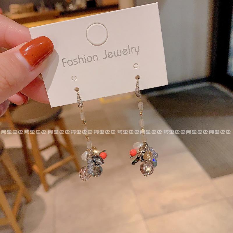 Pendientes de cristal con borlas para mujer, diseño de nicho exquisito, estilo frío avanzado, joyería coreana 2024