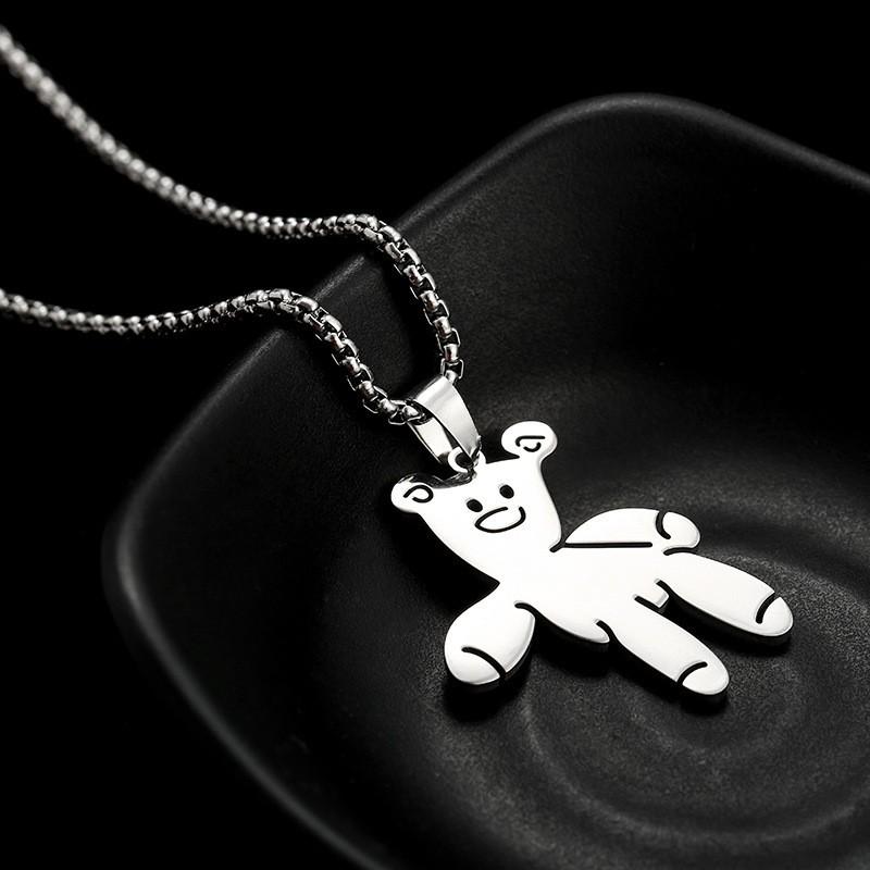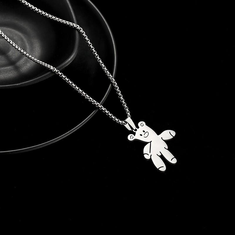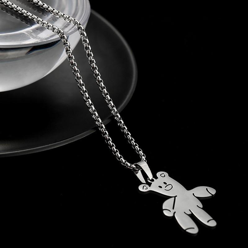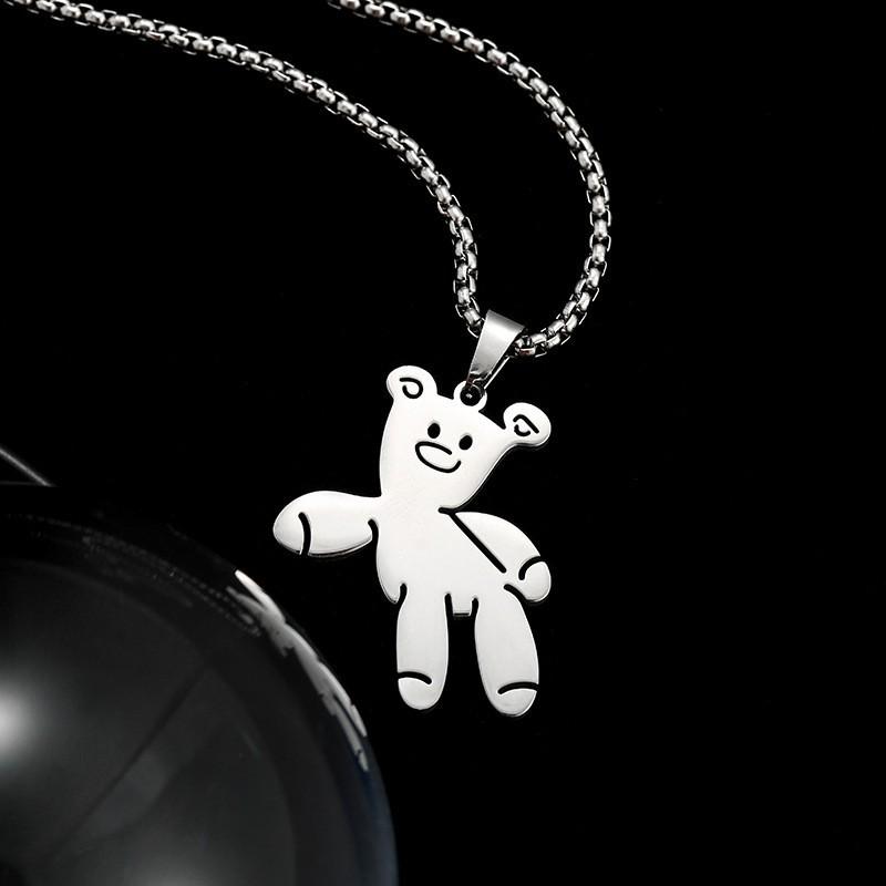 Collar de acero inoxidable con forma de oso, venta caliente transfronteriza, personalizado, de moda, combina con todo, diseño de nicho, colgante para hombres y mujeres, cadena de suéter simple