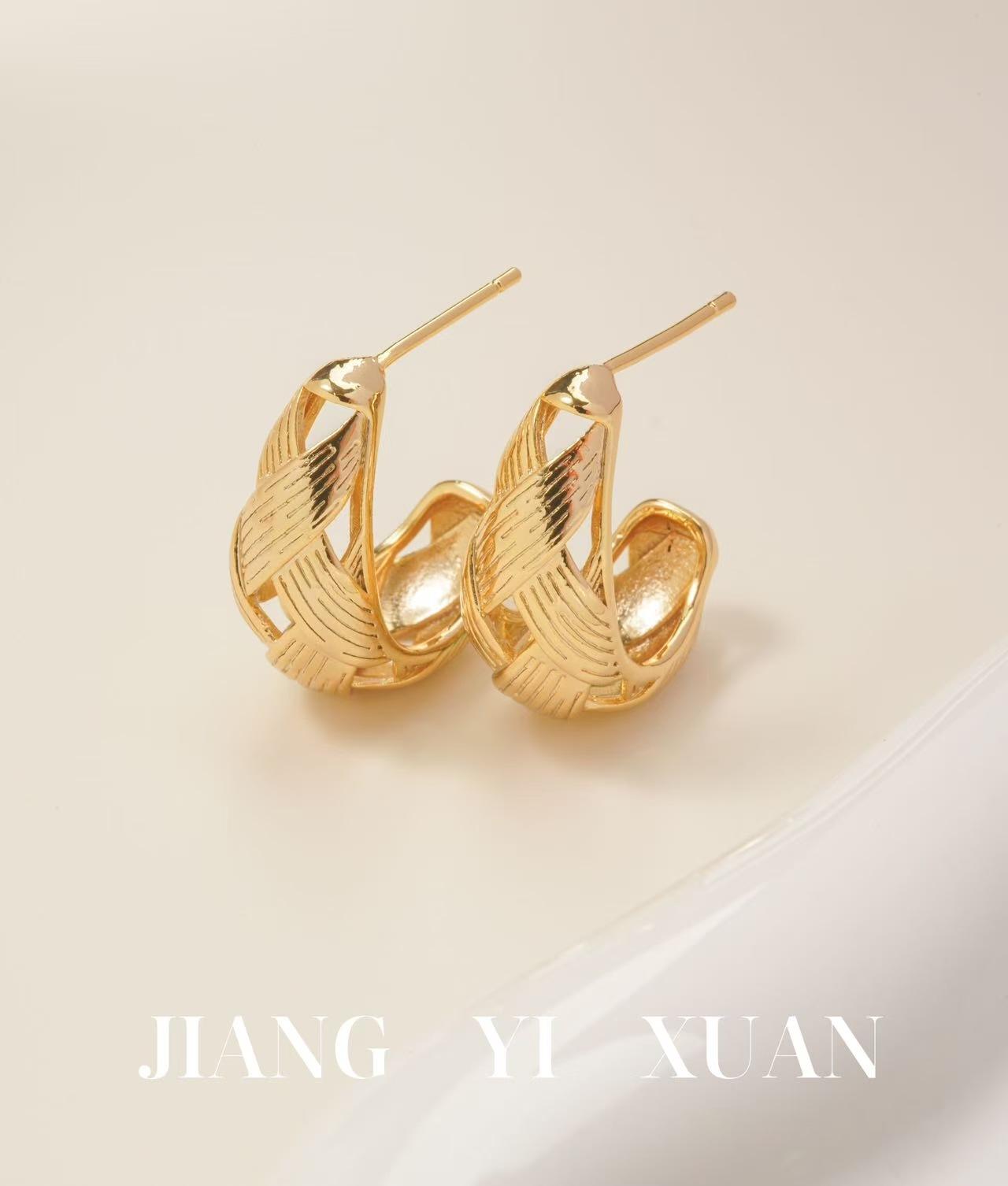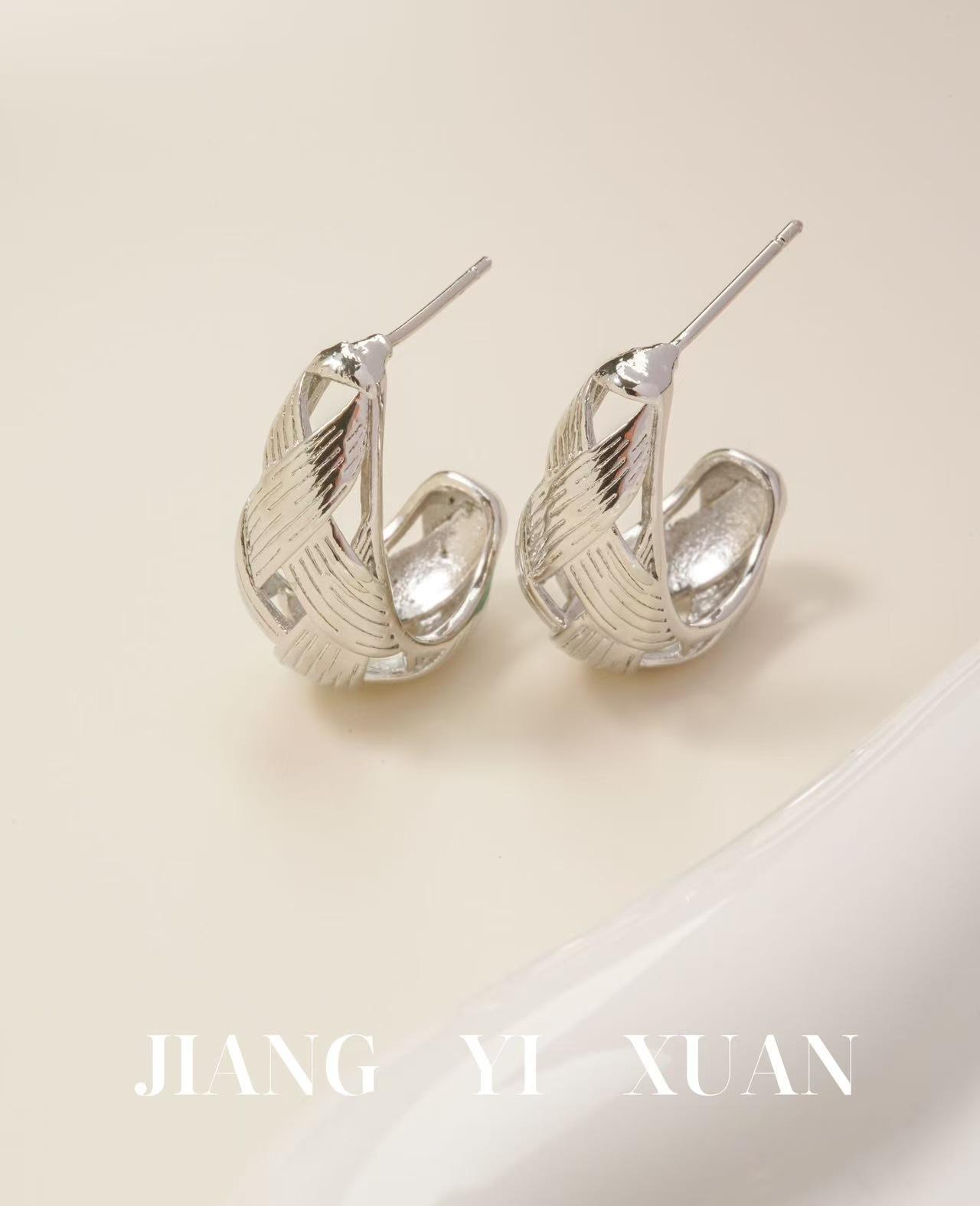 Compra Aretes de Aguja de Plata Tejidos Huecos de Metal, Aretes Nicho Europeos y Americanos, Nuevo Diseño Exagerado, Líneas Geométricas Artísticas al por mayor en Joom.pro