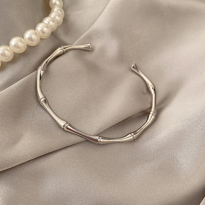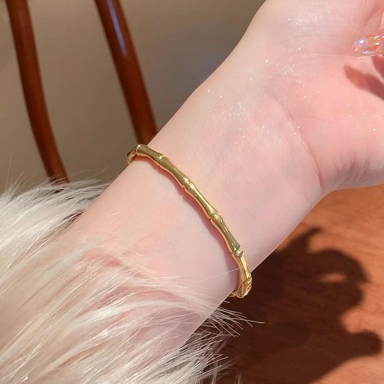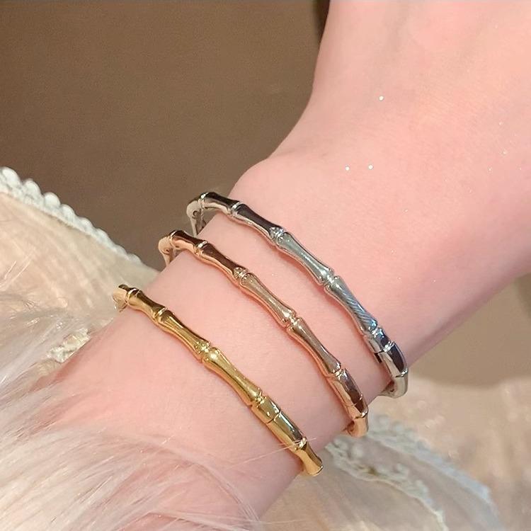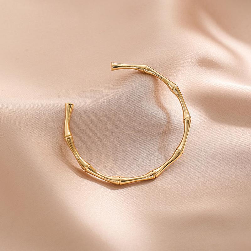 Pulsera de Acero Titanio Bambú para Mujer, Pulsera de Anillo Liso de Alta Gama, Lujo Accesible Festival Pulsera de Alta Apertura para Hombres y Mujeres, Finamente Pulida