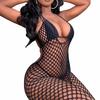 Lencería sexy de una pieza para mujer, de Internet, de celebridades europeas y americanas, con red de pesca, sin despegar, color negro, tentación