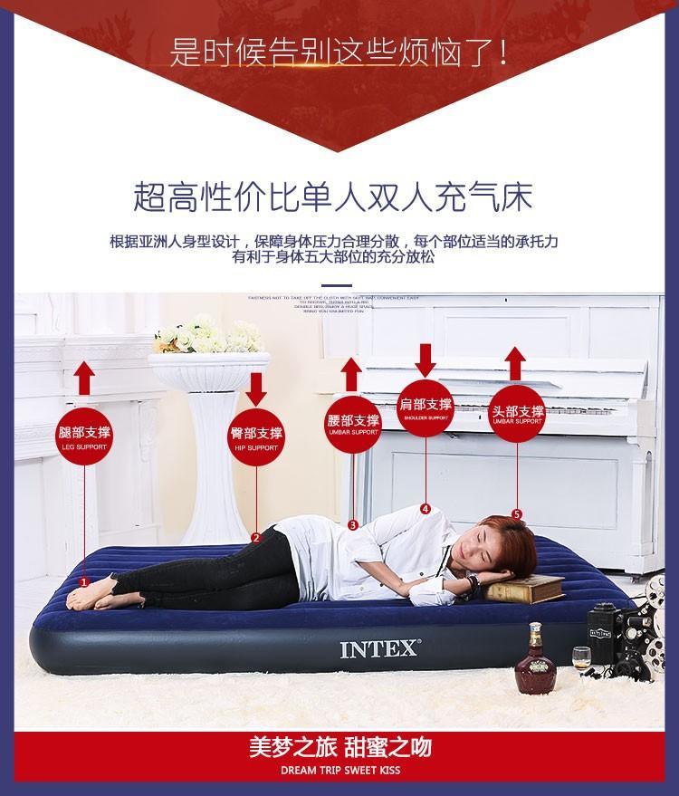 Colchón de aire individual INTEX 64756 línea flocado azul oscuro