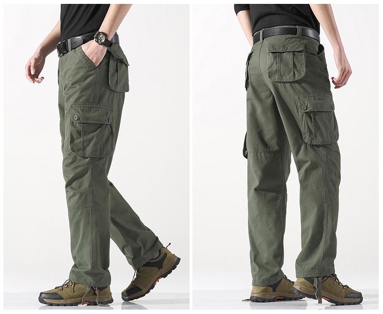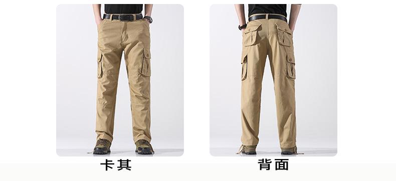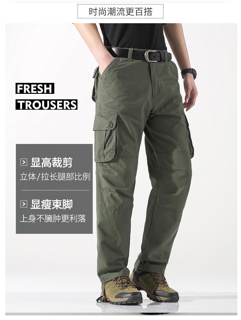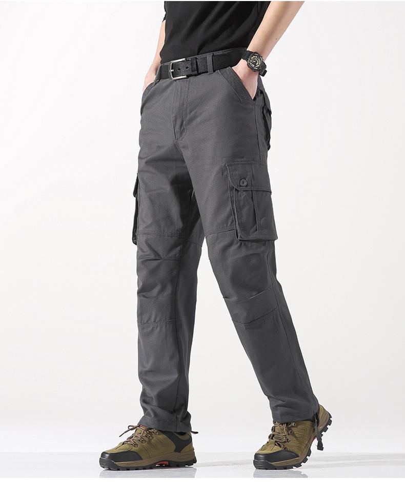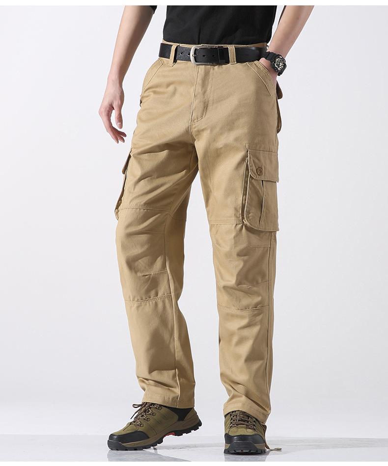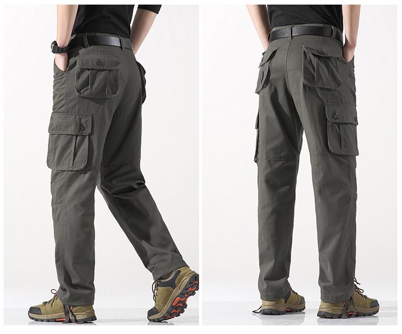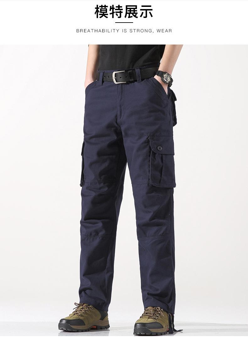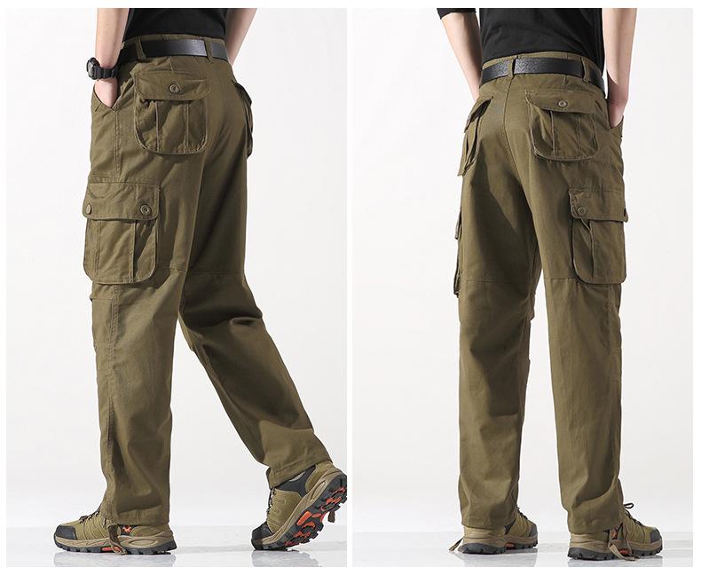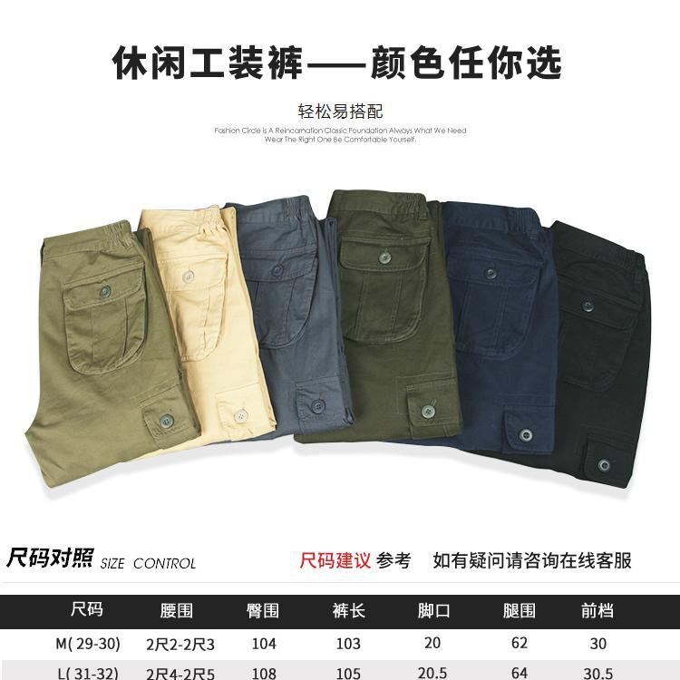 Pantalones casuales de algodón de comercio exterior para hombre, pantalones de cintura elástica de talla grande, pantalones holgados con múltiples bolsillos, pantalones de obra