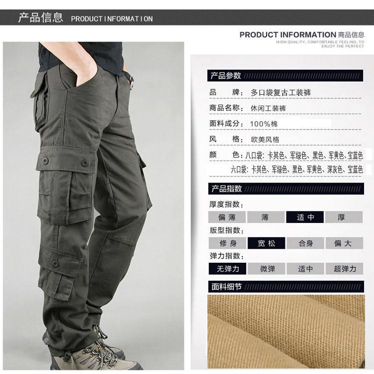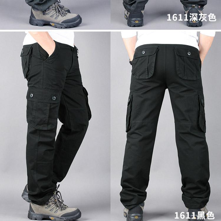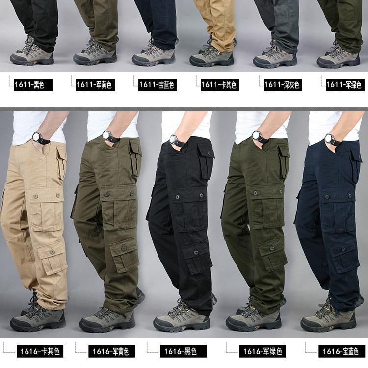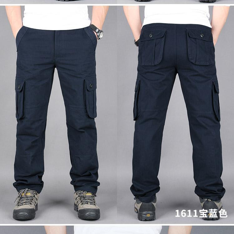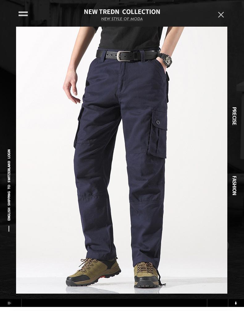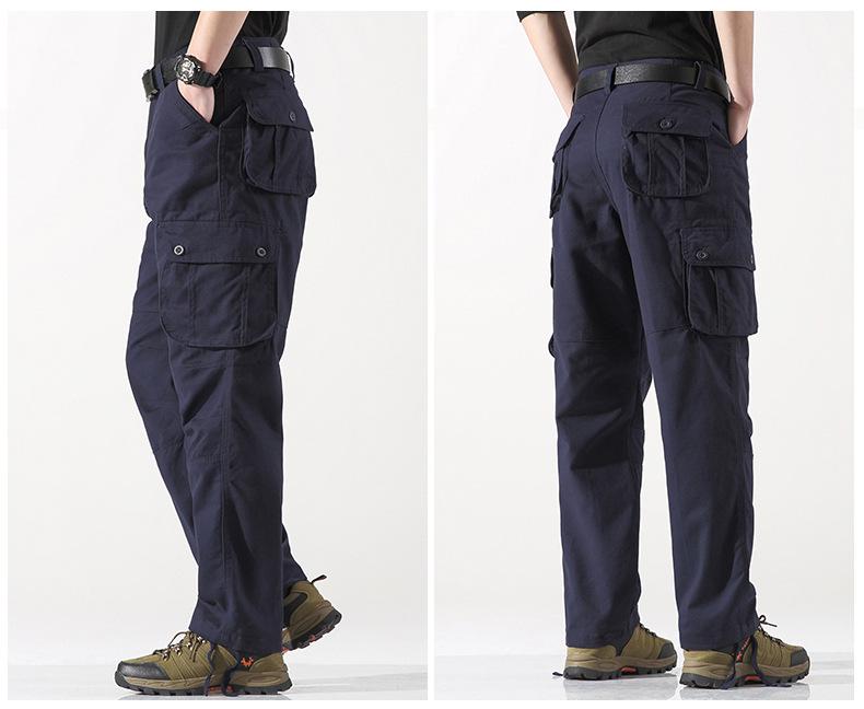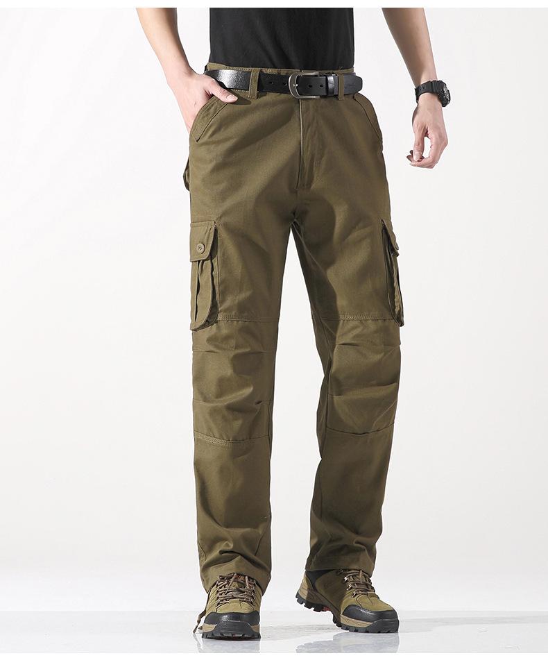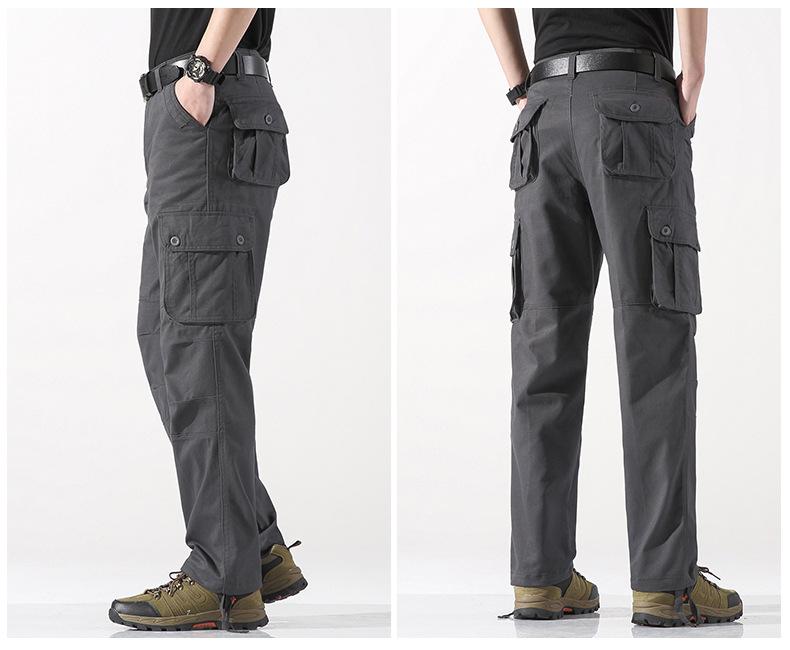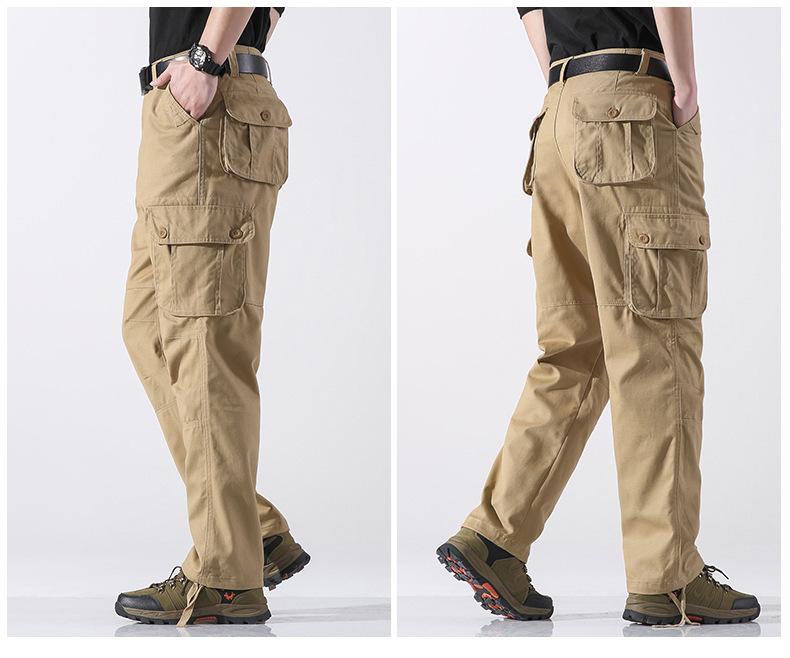 Pantalones casuales de algodón de comercio exterior para hombre, pantalones de cintura elástica de talla grande, pantalones holgados con múltiples bolsillos, pantalones de obra