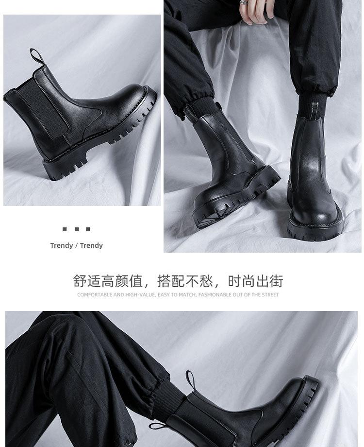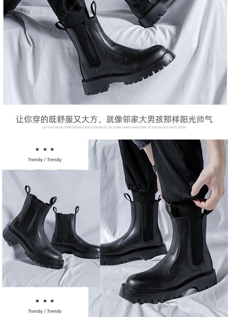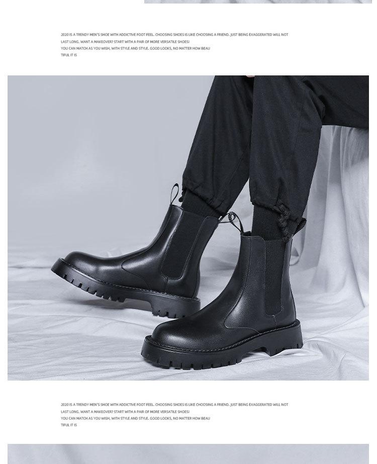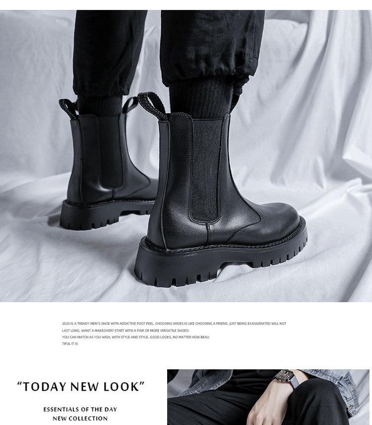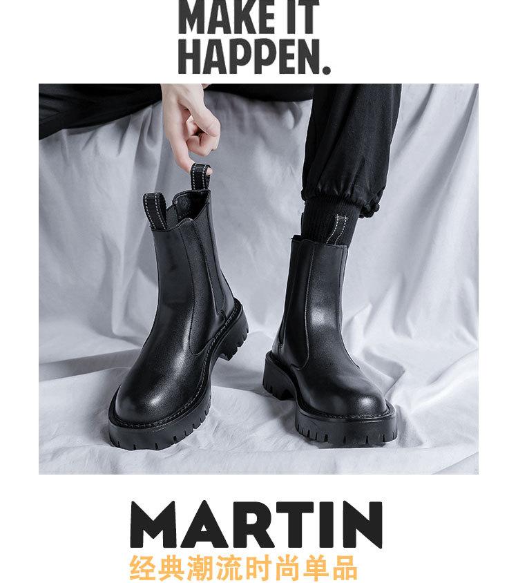 Botas Chelsea de cuero para hombre, botas Martin sin cordones, estilo retro británico, botas de cuero informales de negocios versátiles, zapatos de hombre de altura oculta