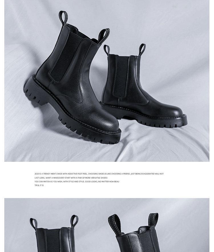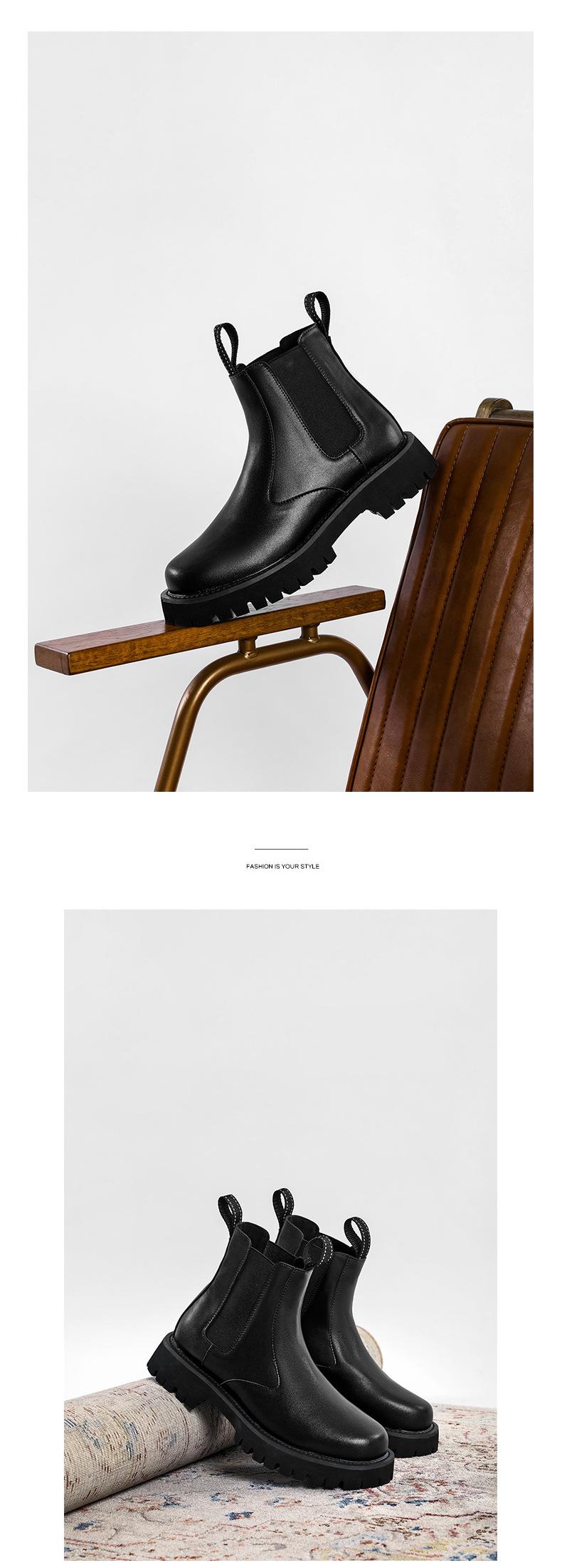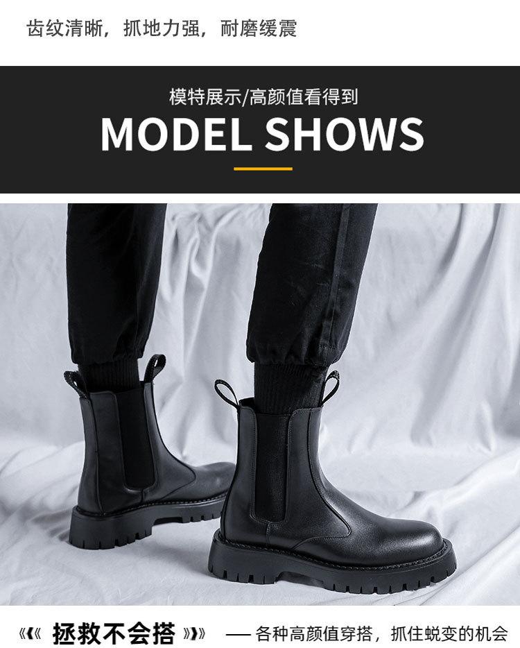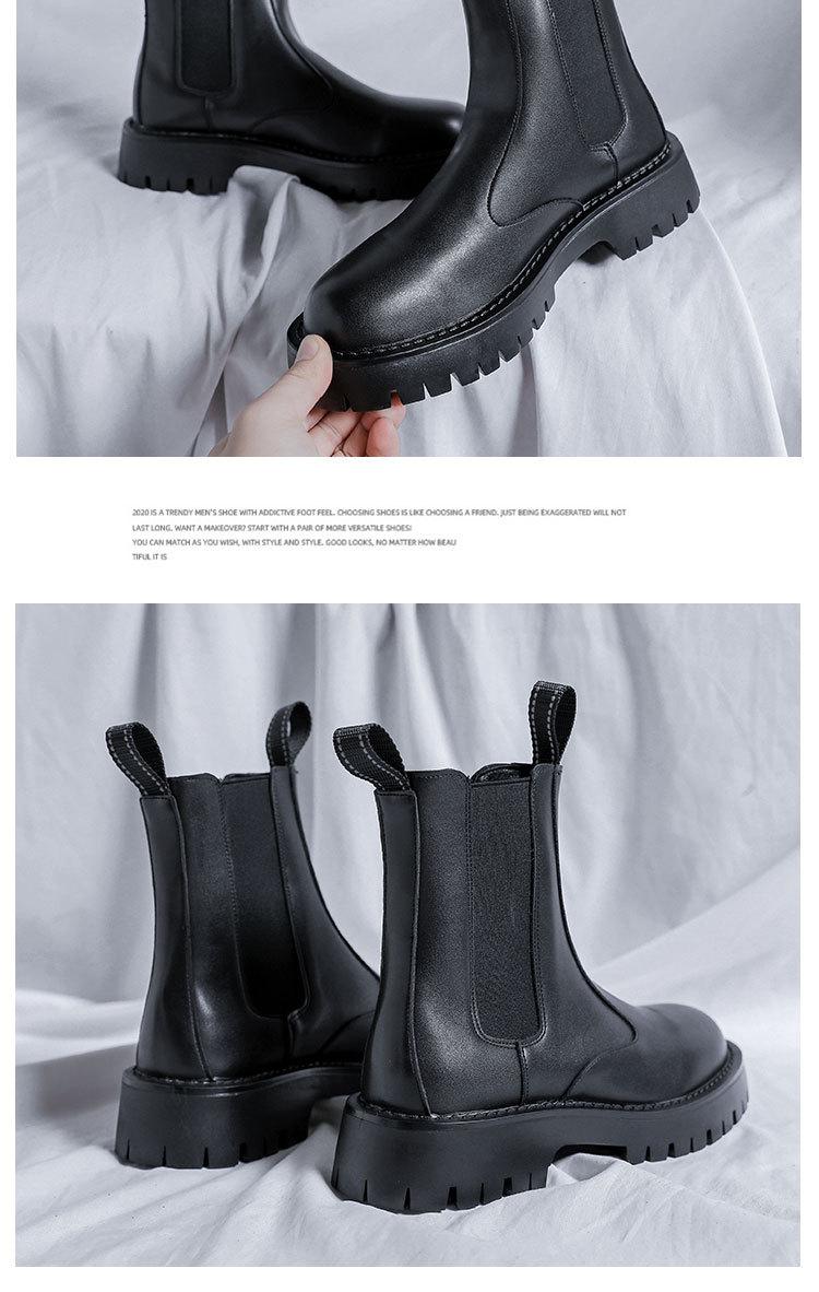 Botas Chelsea de cuero para hombre, botas Martin sin cordones, estilo retro británico, botas de cuero informales de negocios versátiles, zapatos de hombre de altura oculta