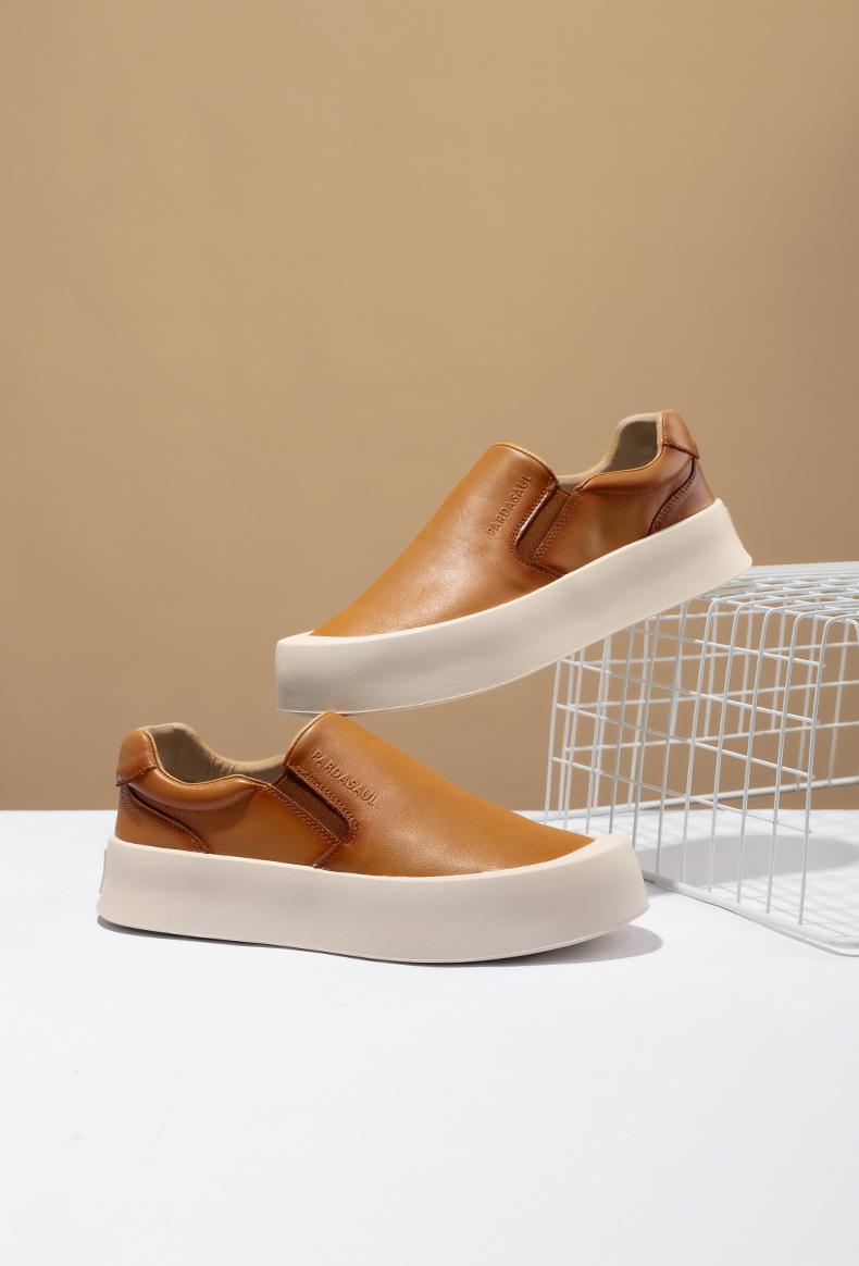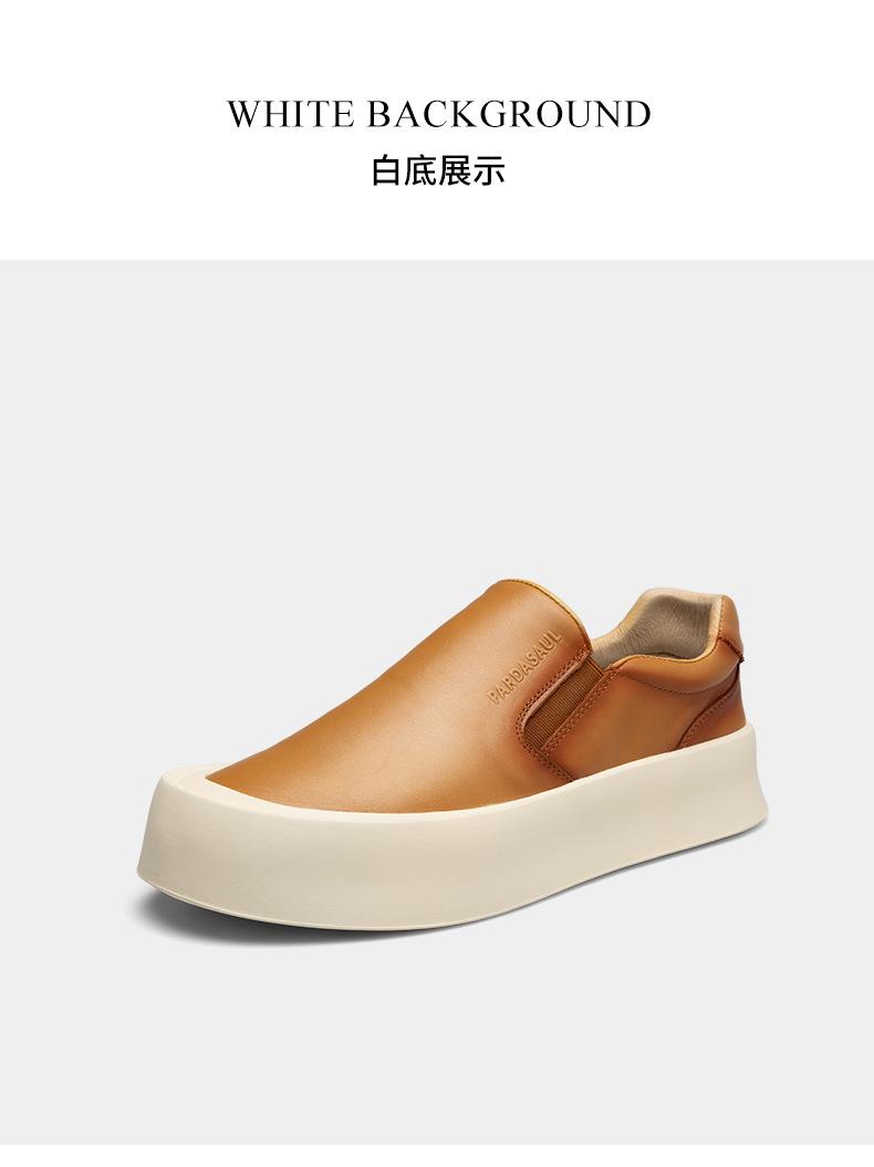 Mocasines de cuero genuino para hombre, zapatos retro sin cordones, de suela gruesa, informales, para primavera 2024.