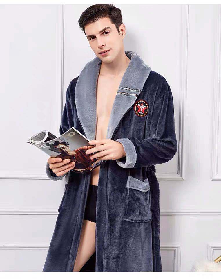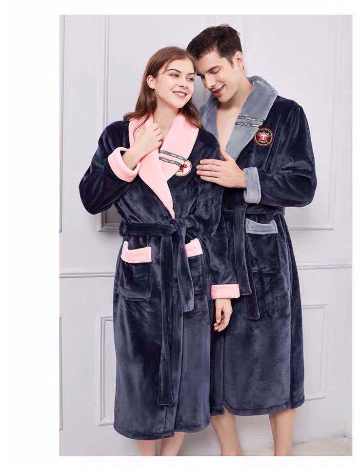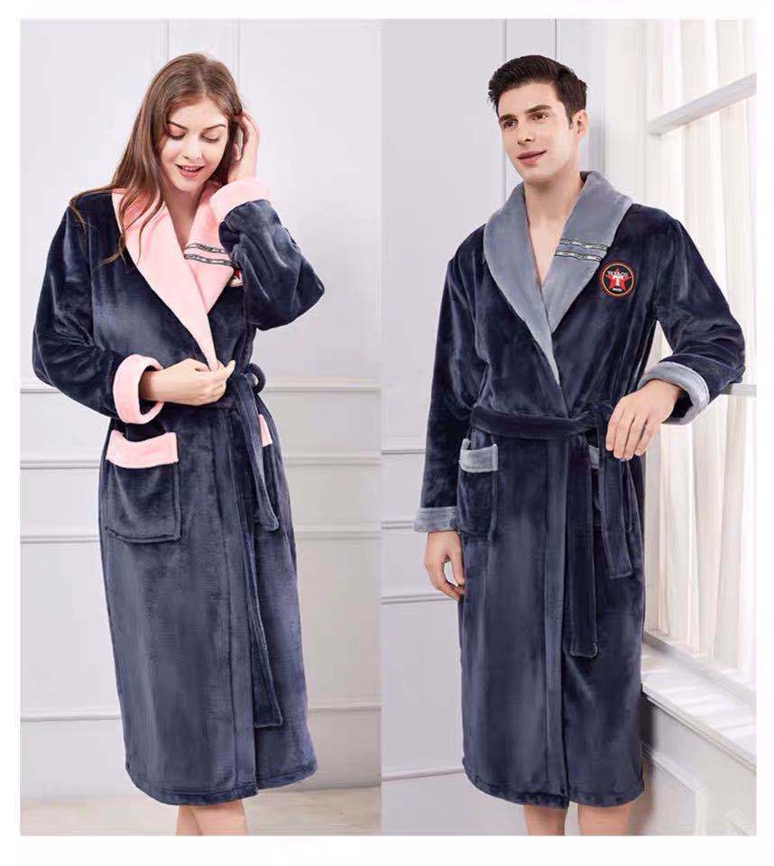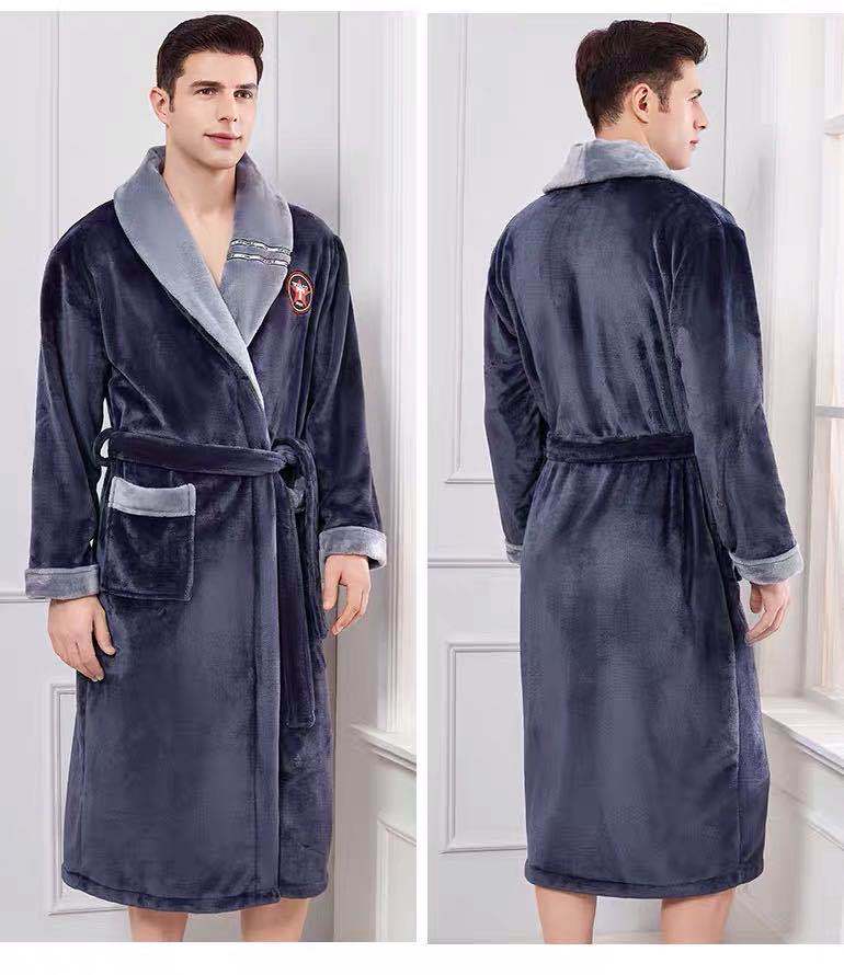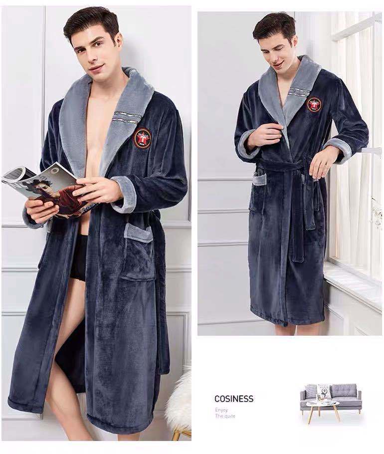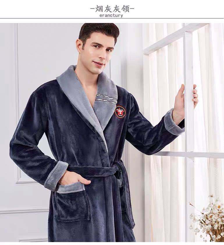 Pijama de invierno nuevo, camisón largo de forro polar coral grueso, bata de franela para hombre, bata de baño para amantes, suministro directo de fábrica.