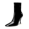 Botas Nuevas de Otoño e Invierno 2024 para Mujer Botines de Charol de Tacón Alto Tacón de Aguja Punta Cuadrada Metálica Hasta la Rodilla Botas Sexy Ajustadas