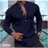 Ropa para Hombre Europea y Americana al Mayoreo 2024 Camisetas Casuales de Punto para Hombre de Manga Larga de Color Sólido con Cuello Henry
