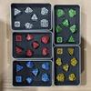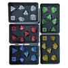 Especificaciones: 7 juegos: 20 caras, 12 caras, 10 caras 0-9, 100 caras 00-90, 8 caras, 6 caras, 4 caras 1 cada uno (7 piezas/juego)