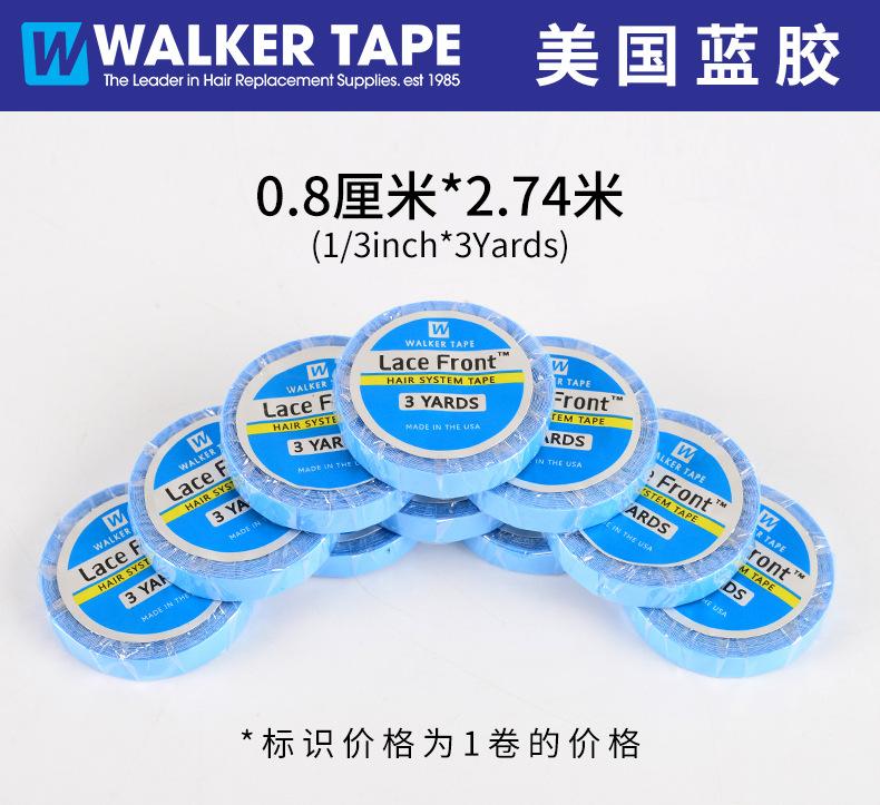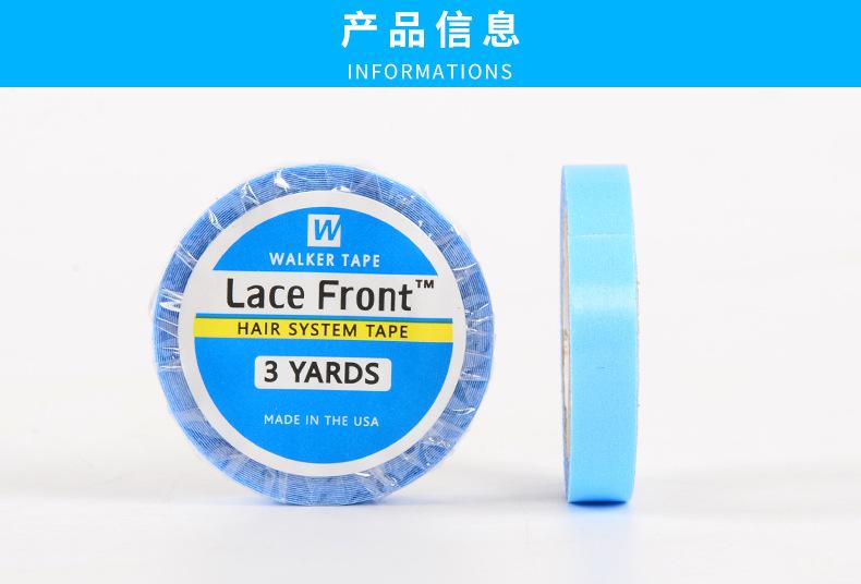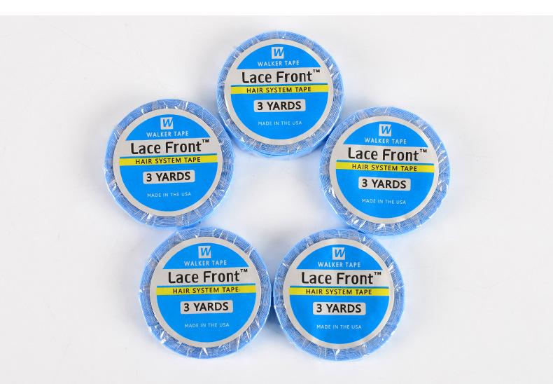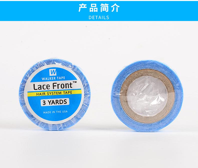 Película de reemplazo de extensión de cabello sin costuras con adhesivo de doble cara de pegamento azul americano, soporte frontal de encaje, tamaño 0,8 x 3