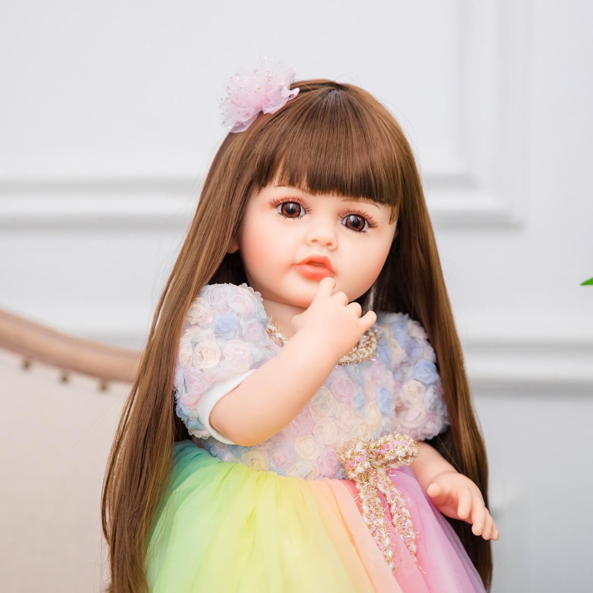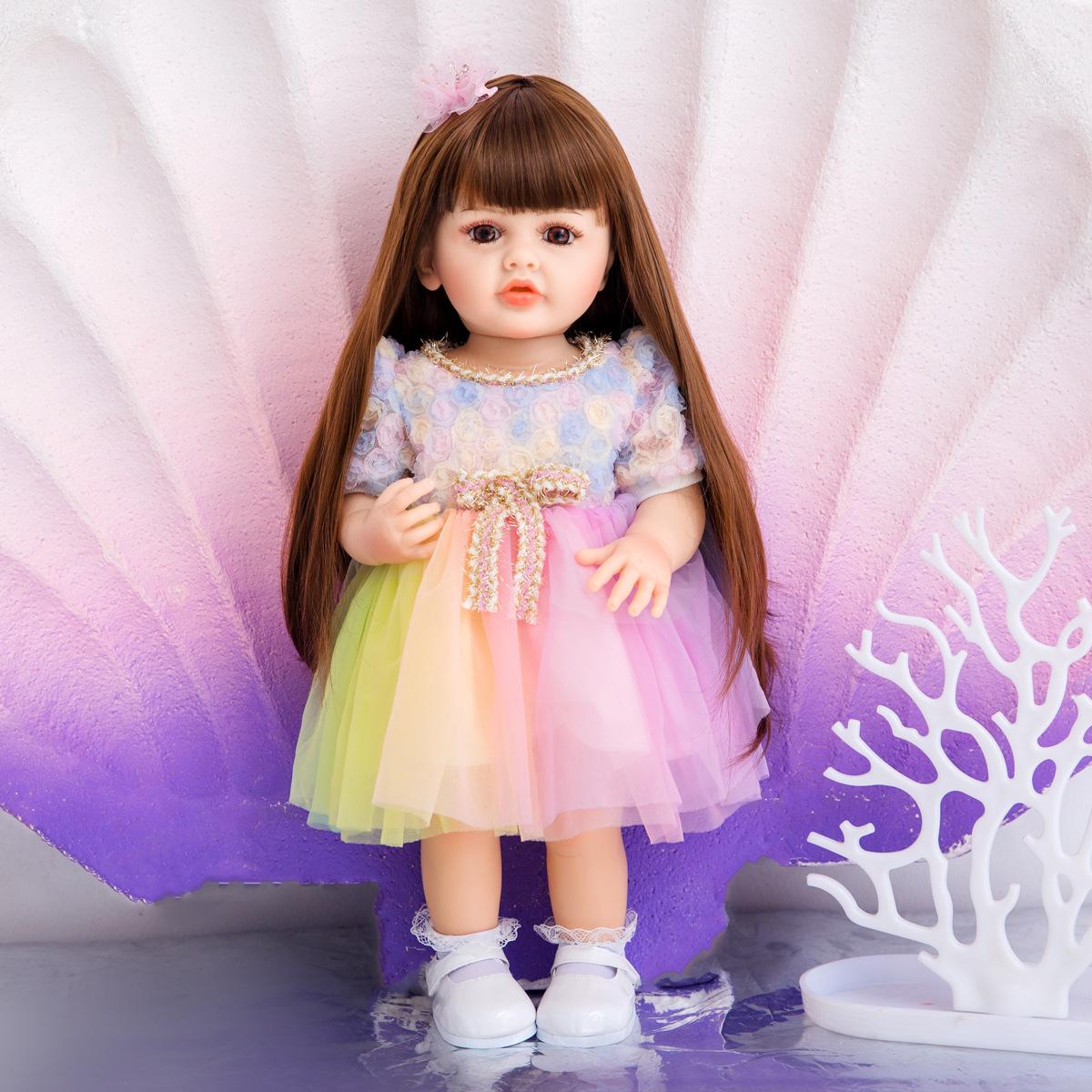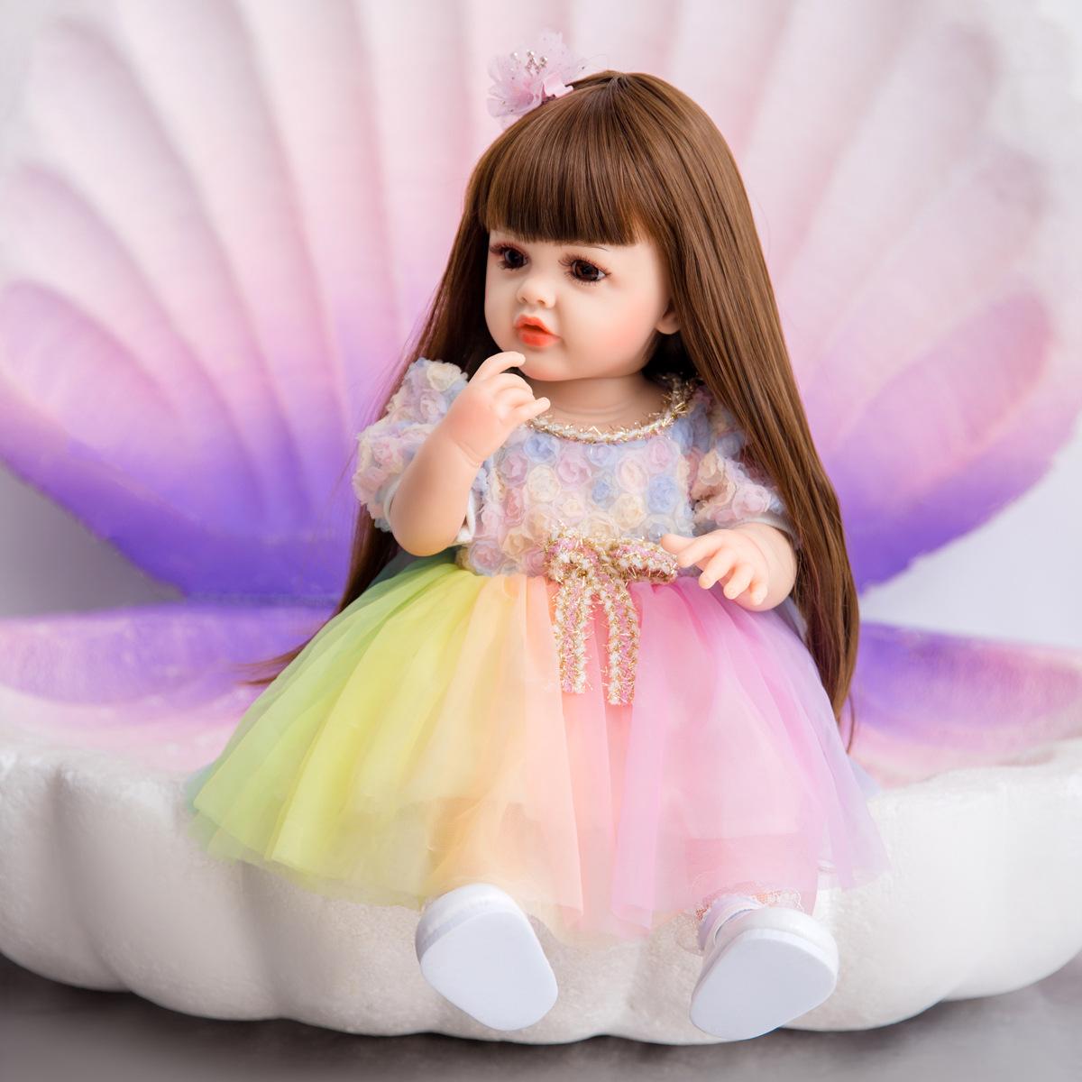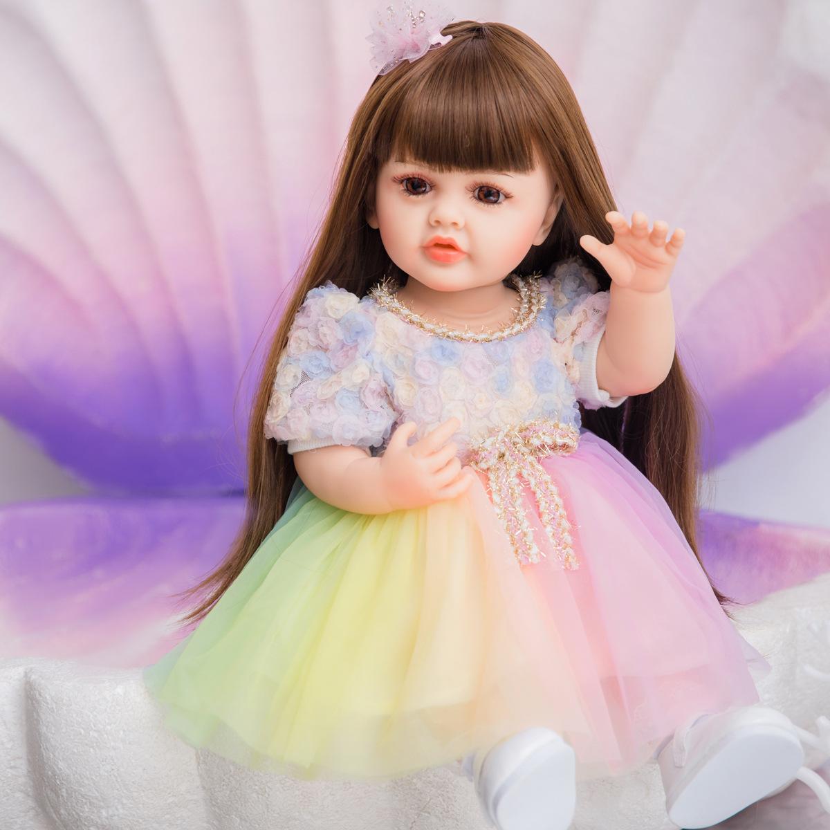 No Oso 55cm Muñeca Reborn de Vinilo Completo Cabello Largo Simulación Muñeca Bebé Bañable Regalo de Cumpleaños para Niña