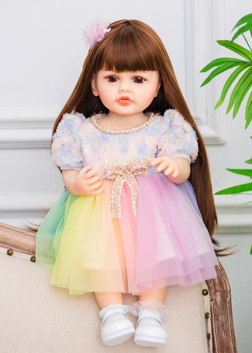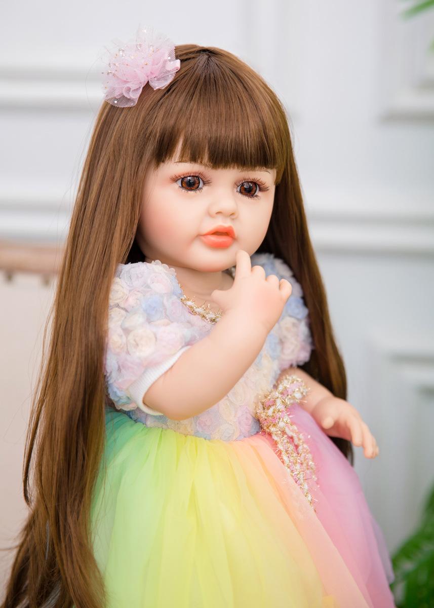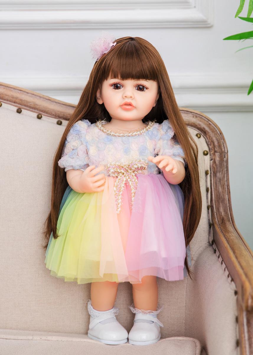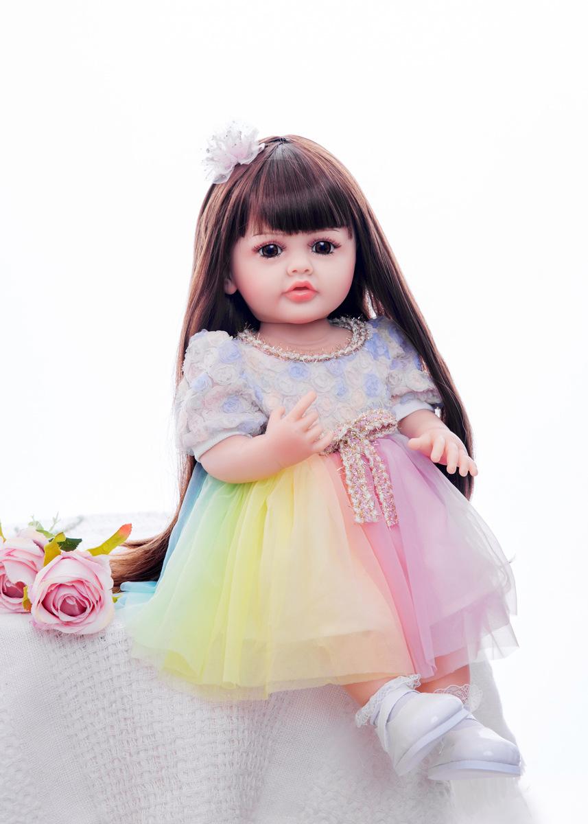No Oso 55cm Muñeca Reborn de Vinilo Completo Cabello Largo Simulación Muñeca Bebé Bañable Regalo de Cumpleaños para Niña