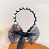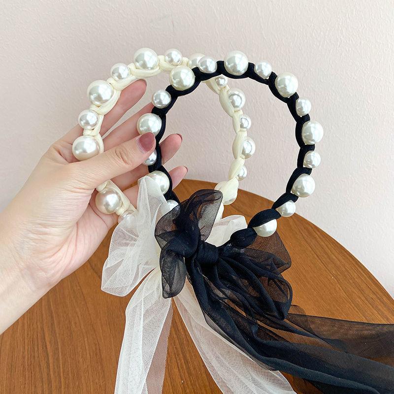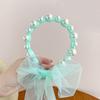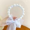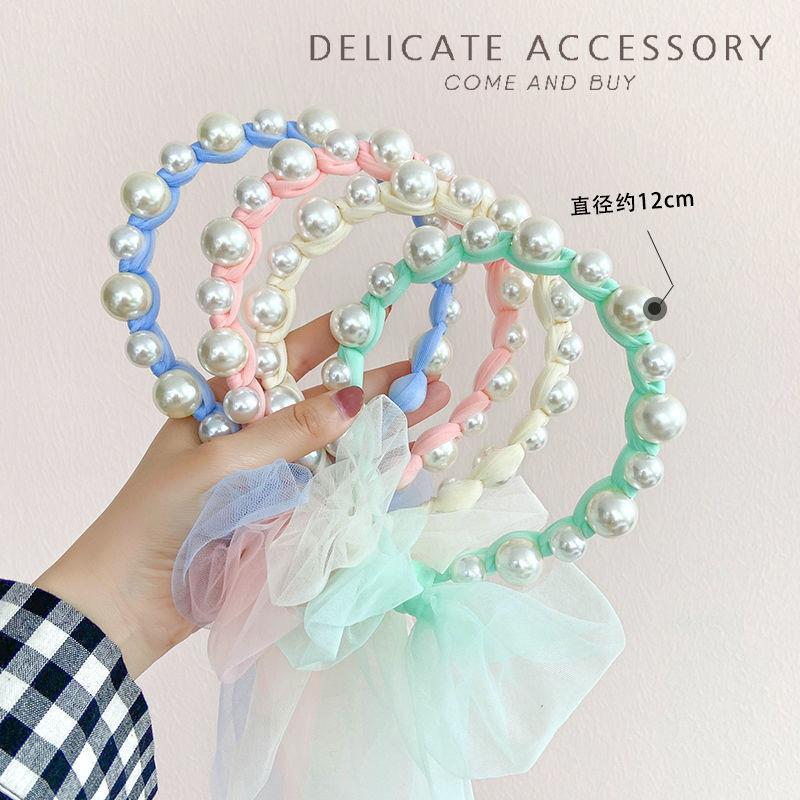 Diadema de Perlas y Cinta para Niños Diadema Coreana de Princesa Malla Cola de Caballo Diadema Lazo para el Cabello para Niñas Lindo Tocado