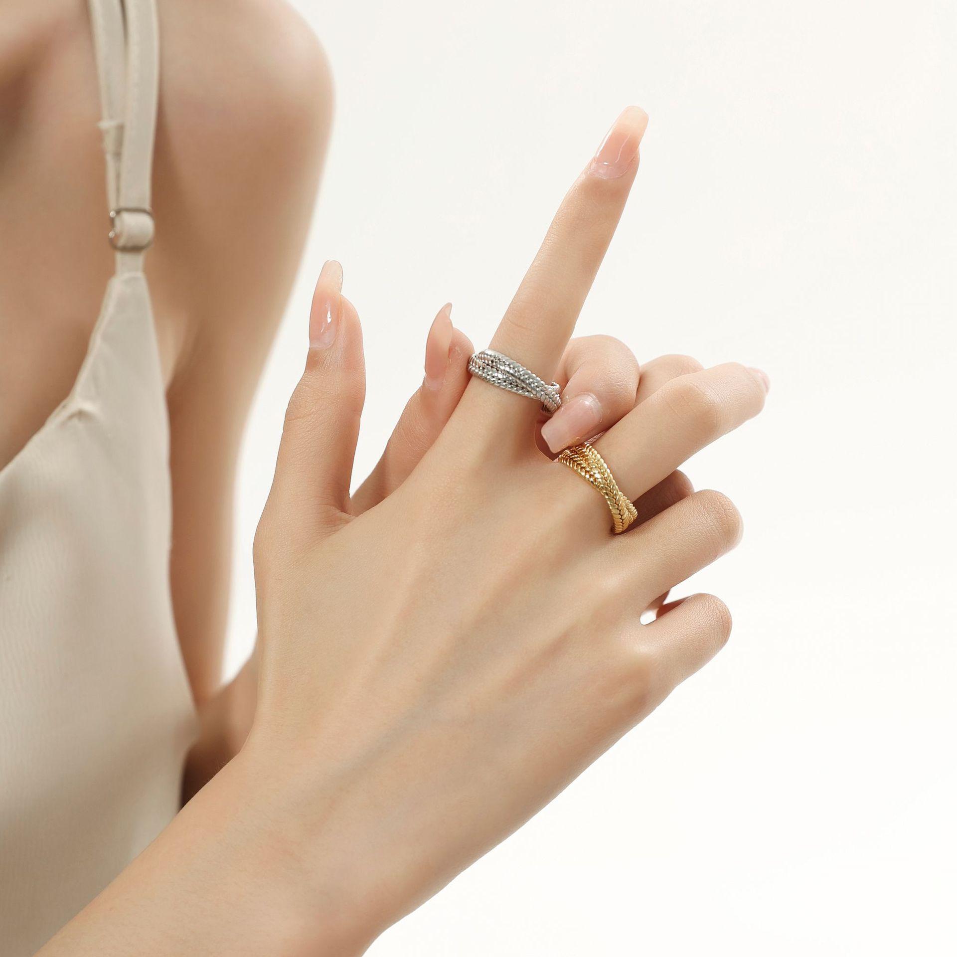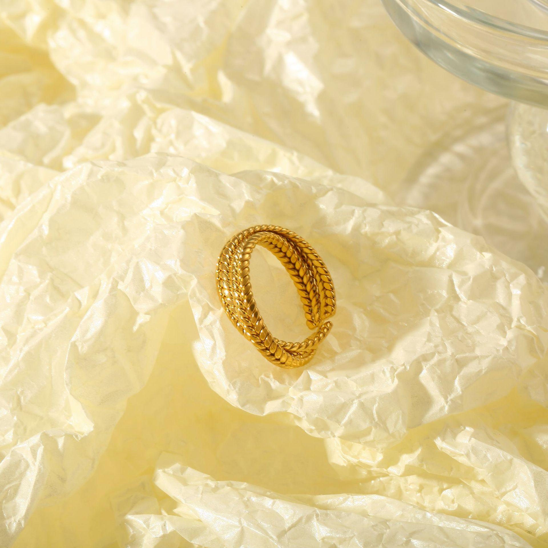 Anillo multicolor de acero titanio con espiga de trigo, anillo de acero inoxidable para mujer, estilo europeo y americano ins, elegante, nicho neutro, estilo frío para llevar