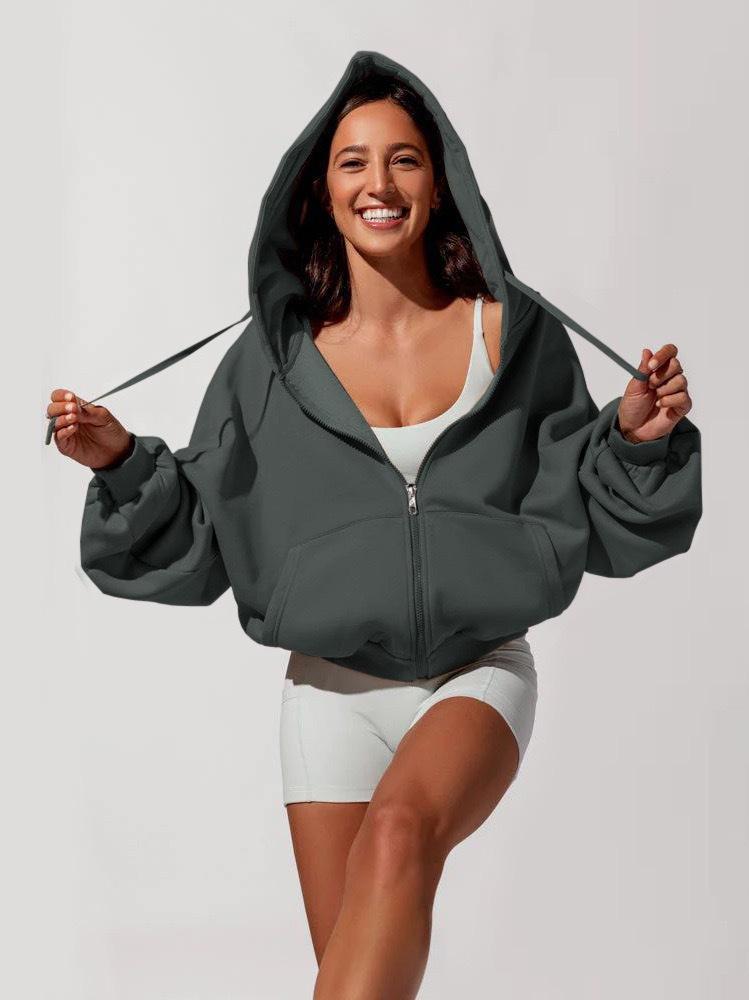 Suéter con Capucha Transfronterizo de Amazon para Mujer Otoño e Invierno Marca de Moda Femenina Europea y Americana Cárdigan de Manga Larga Casual Color Sólido Chaqueta Deportiva