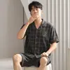 Pijama de hombre, cárdigan fino, pantalones cortos de media manga, traje informal de verano, ropa de hogar fina modal, nueva, talla grande