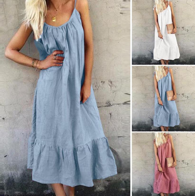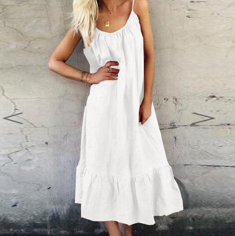 Vestido sin mangas con volantes de color liso con tirantes y tirantes para mujer europea y americana de primavera y verano de 2024