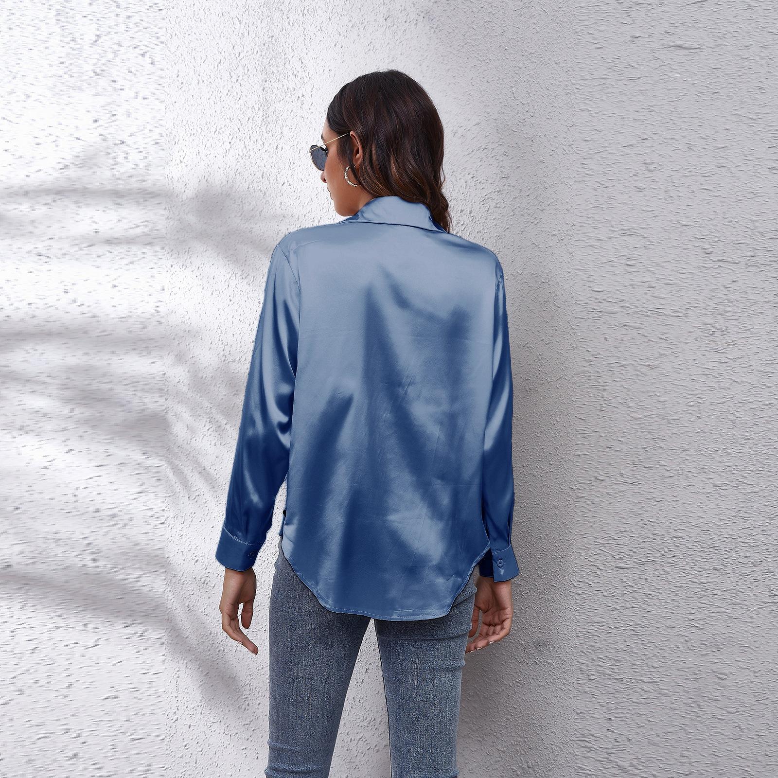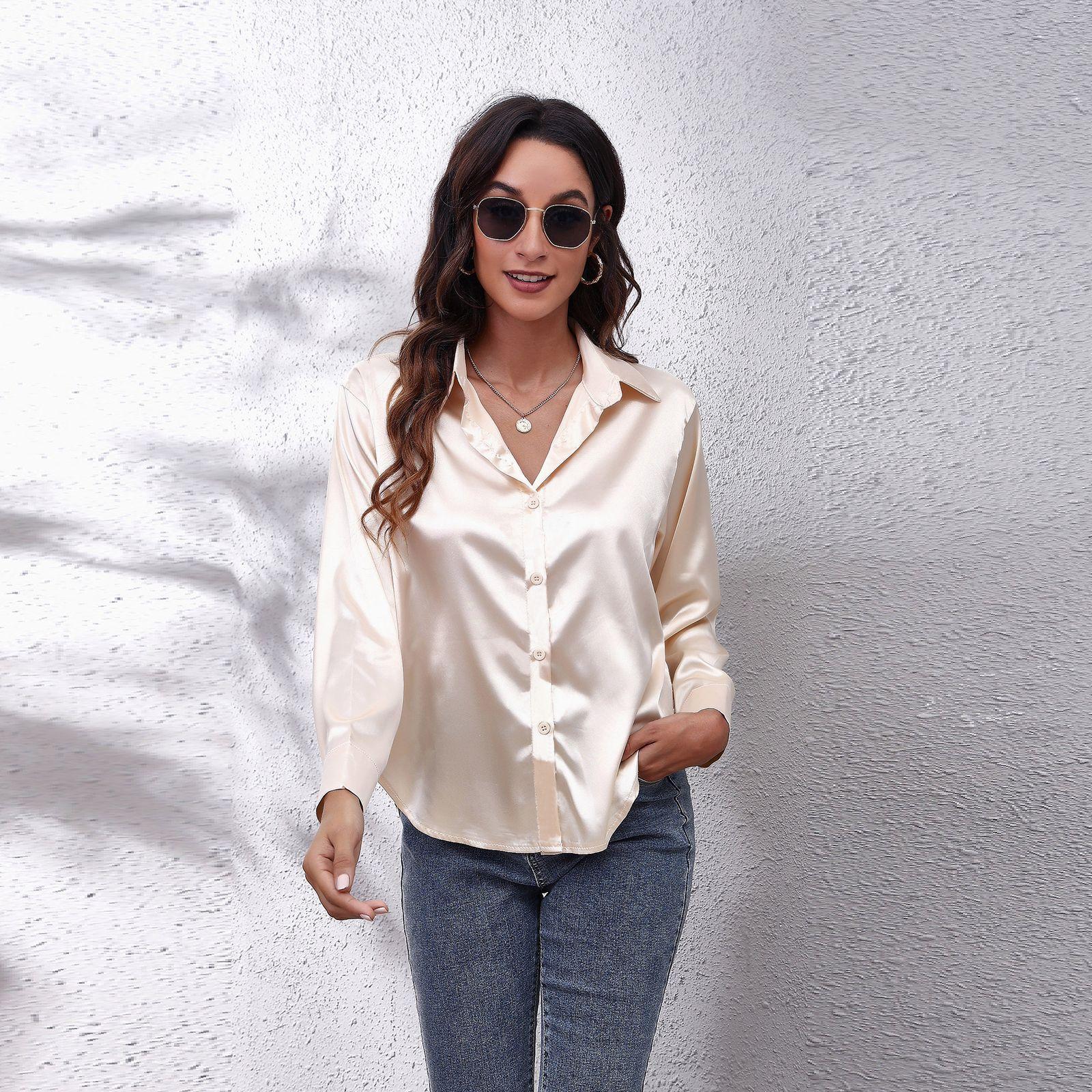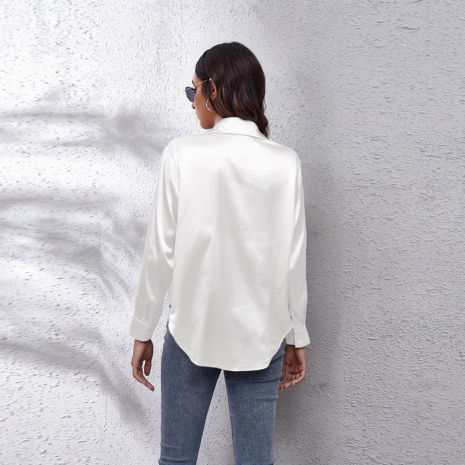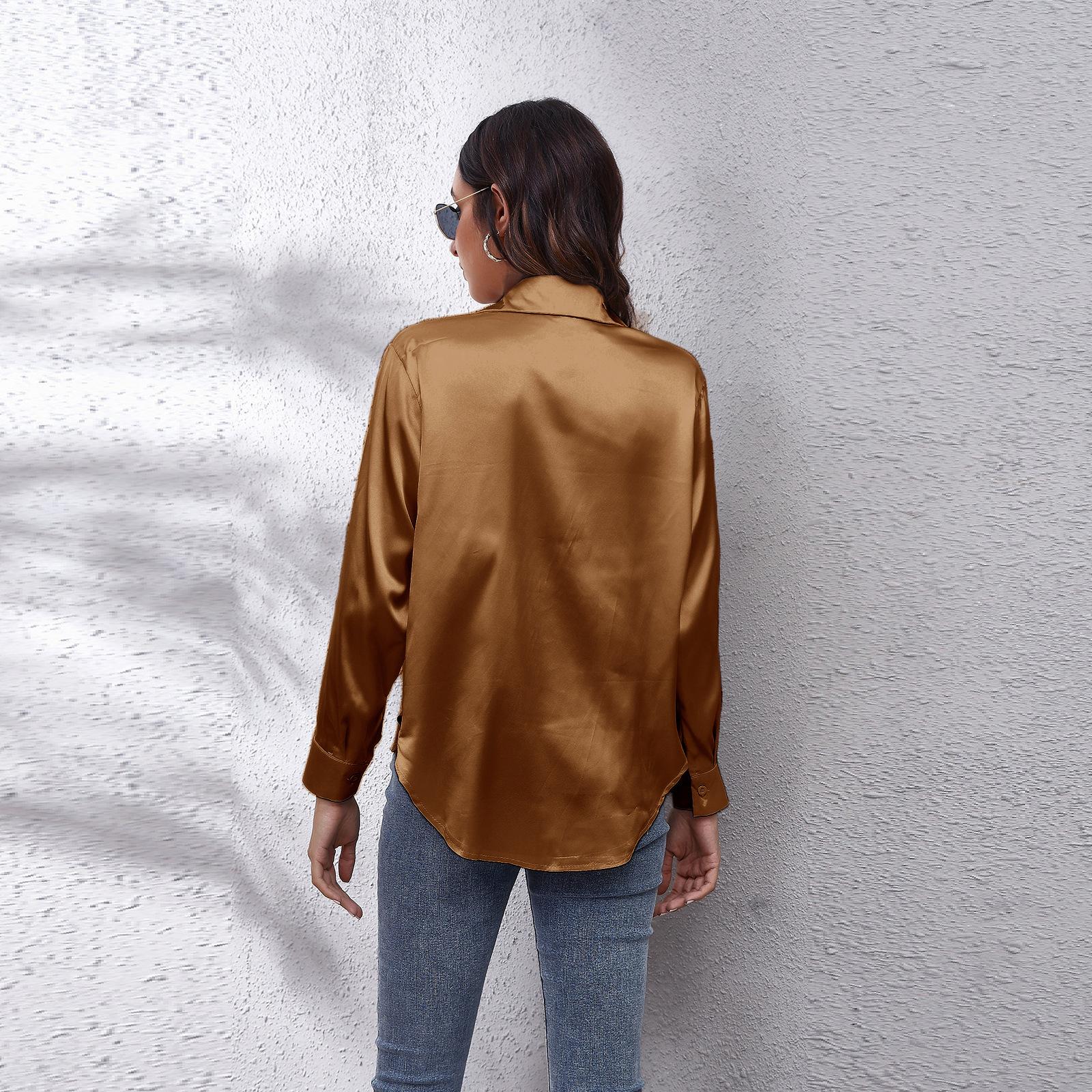 Camisa de Satén Popular de Tiro Real para Mujer Camisa de Satén Imitación Seda de Manga Larga Nueva Exportación Europea y Americana Ropa de Mujer Transfronteriza