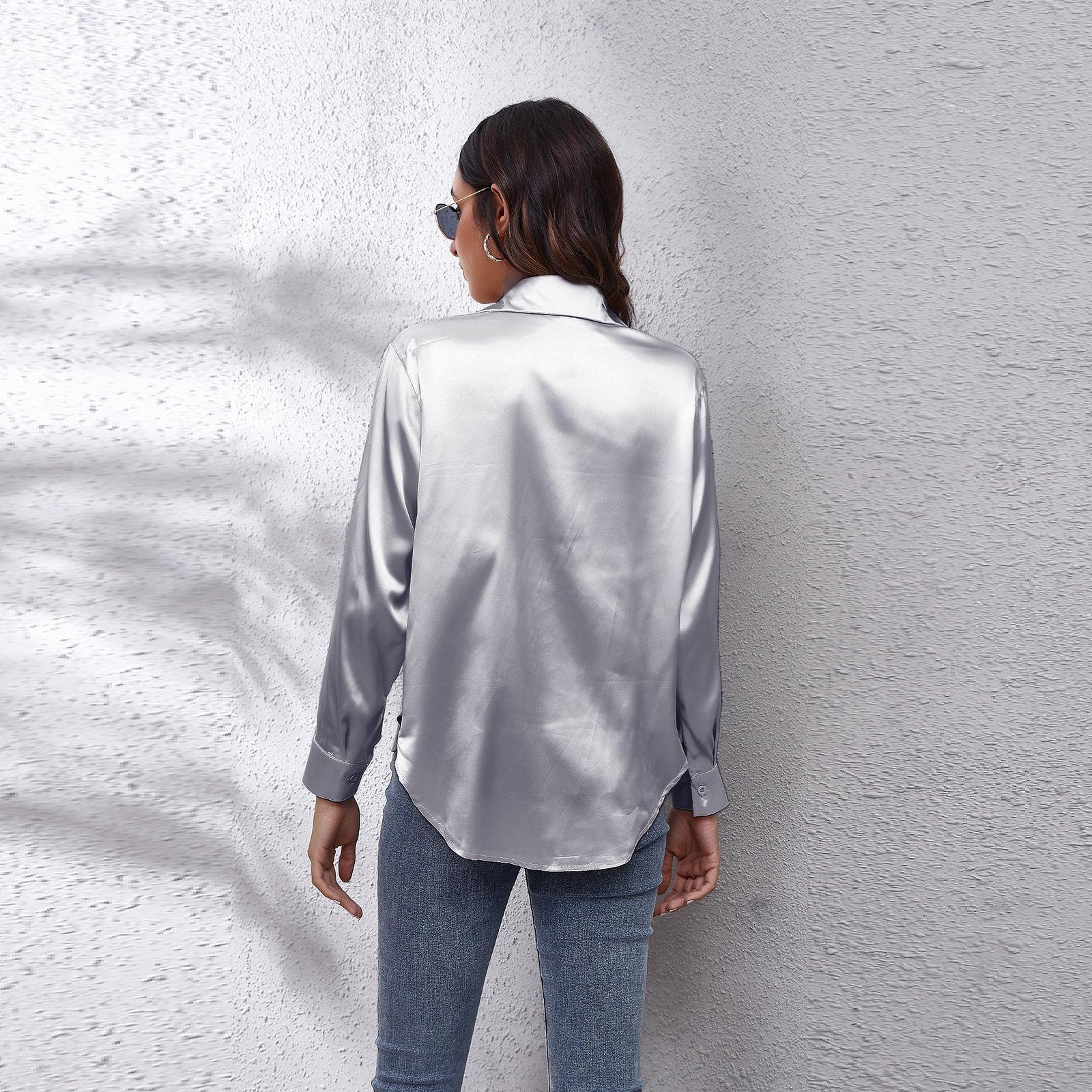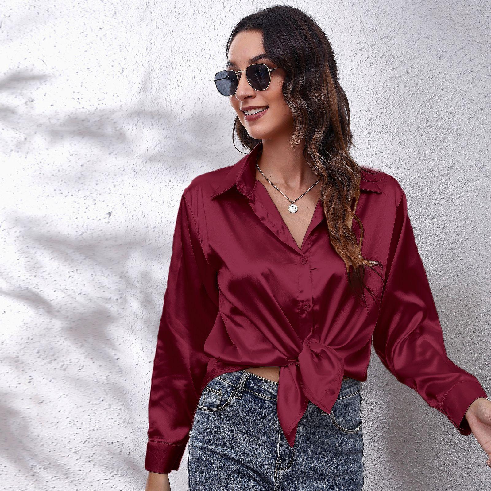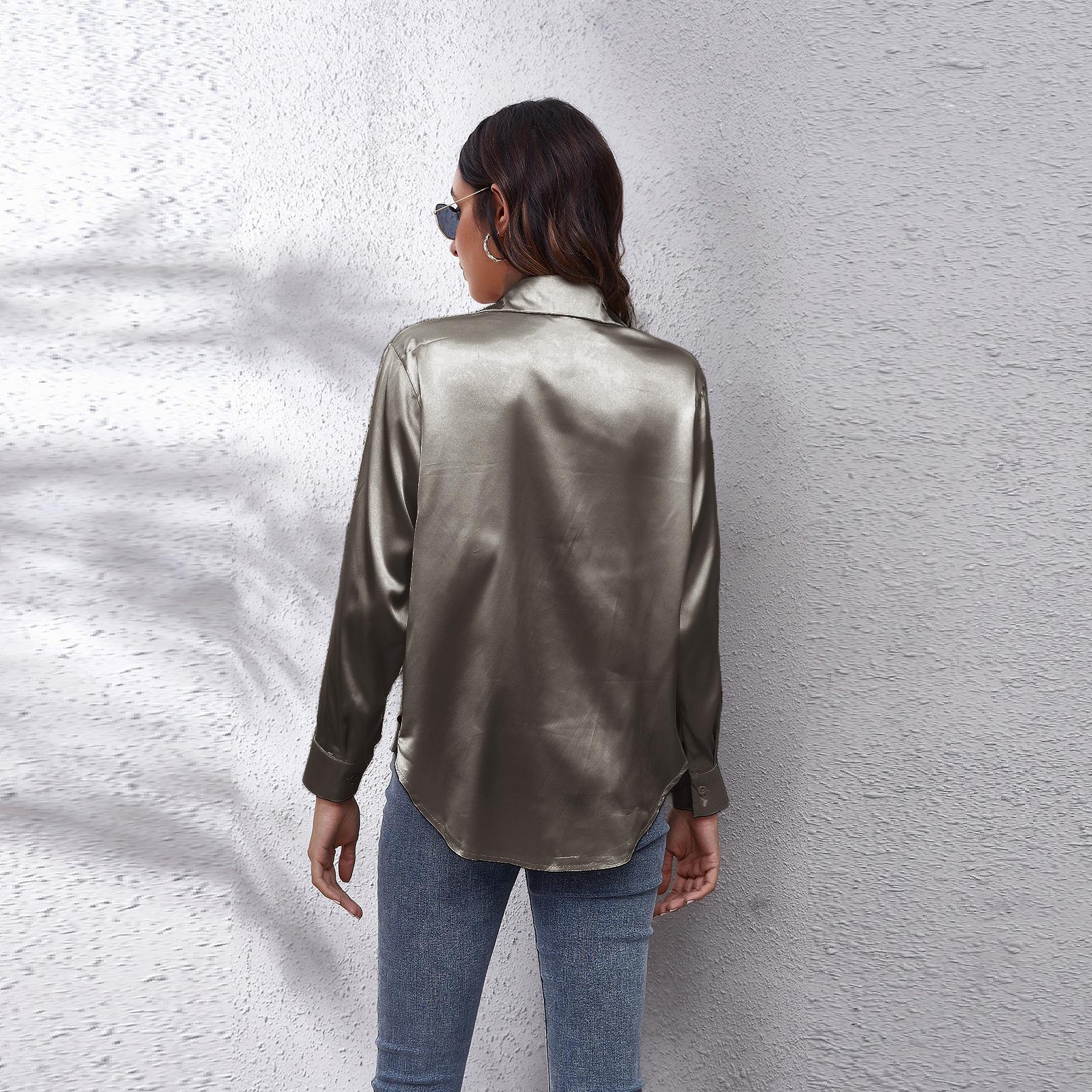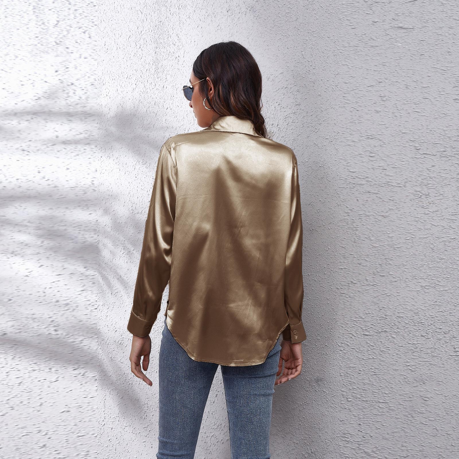 Camisa de Satén Popular de Tiro Real para Mujer Camisa de Satén Imitación Seda de Manga Larga Nueva Exportación Europea y Americana Ropa de Mujer Transfronteriza