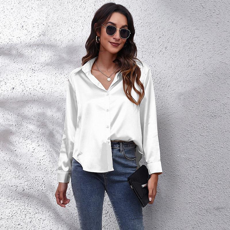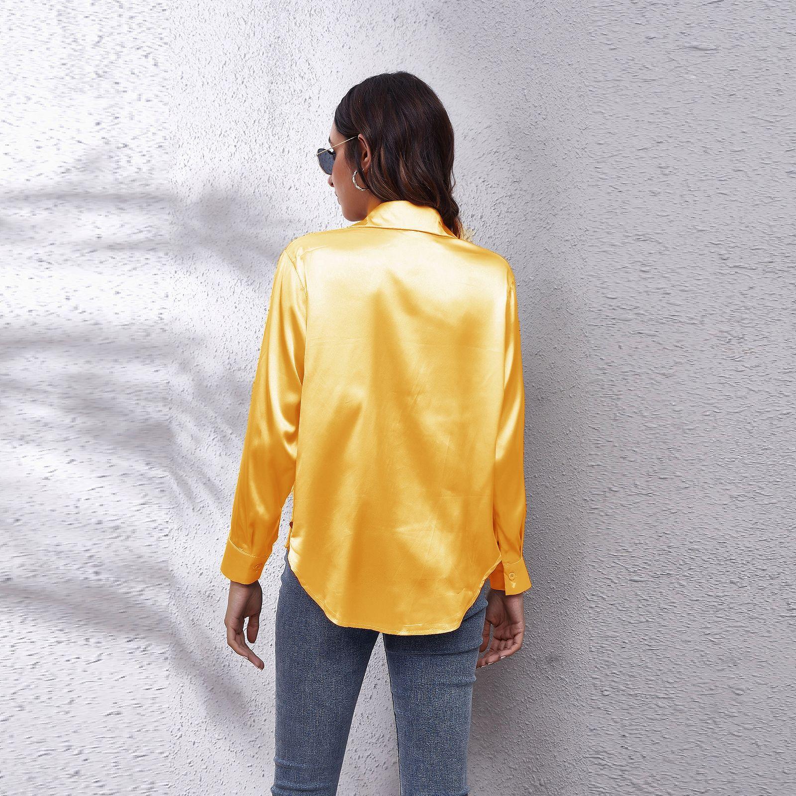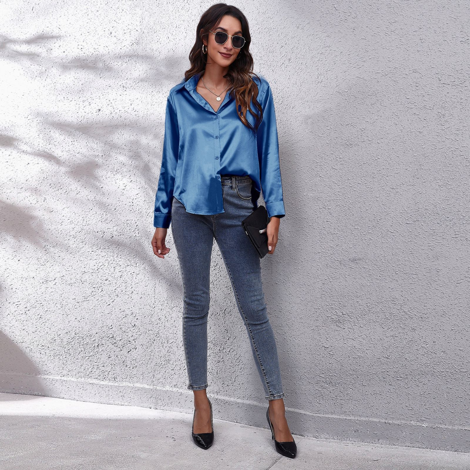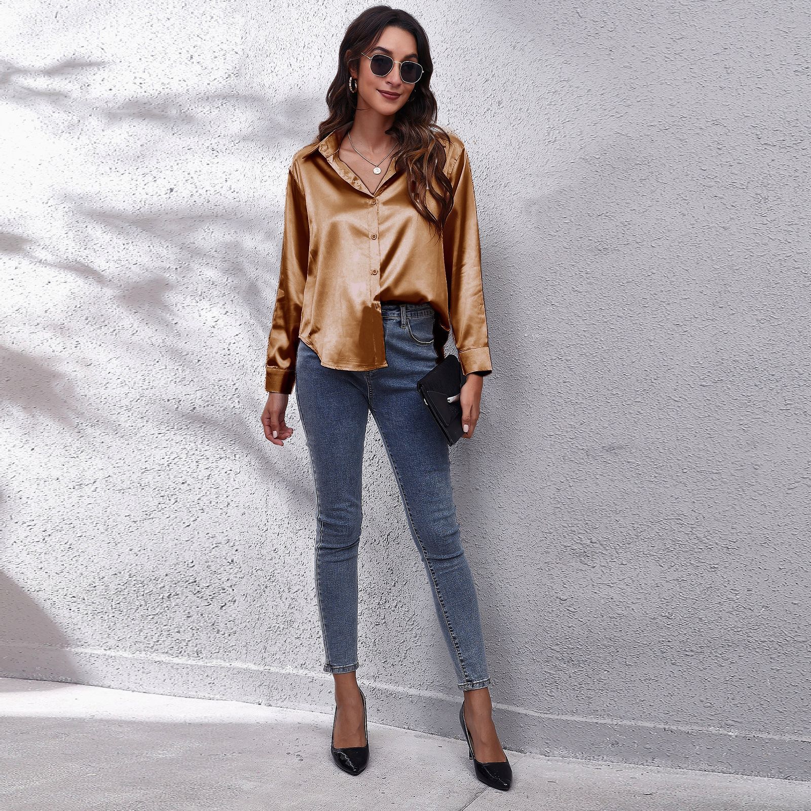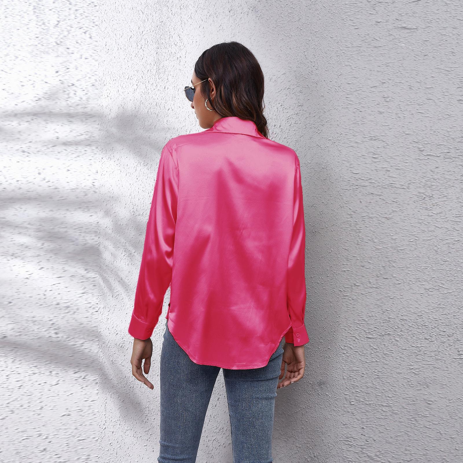 Camisa de Satén Popular de Tiro Real para Mujer Camisa de Satén Imitación Seda de Manga Larga Nueva Exportación Europea y Americana Ropa de Mujer Transfronteriza