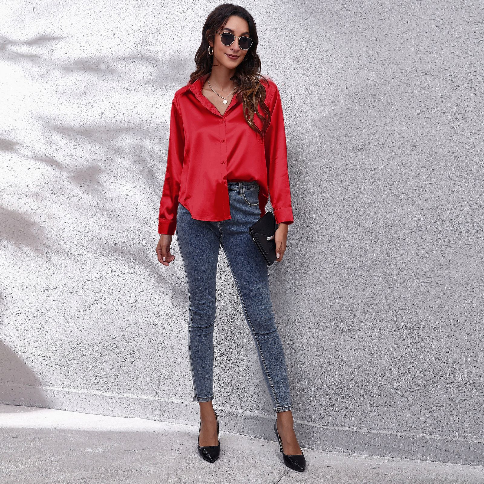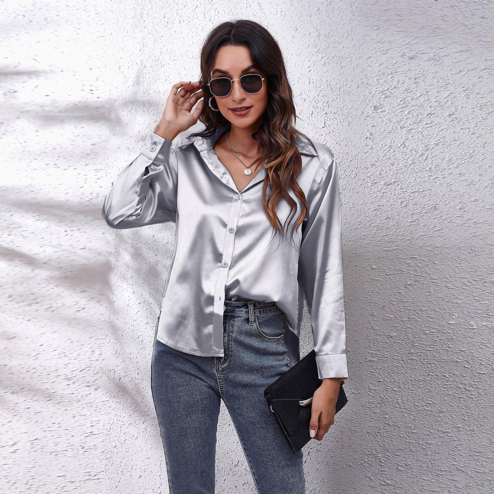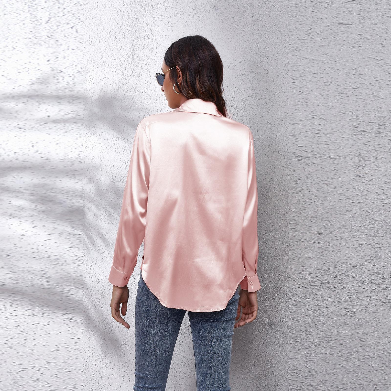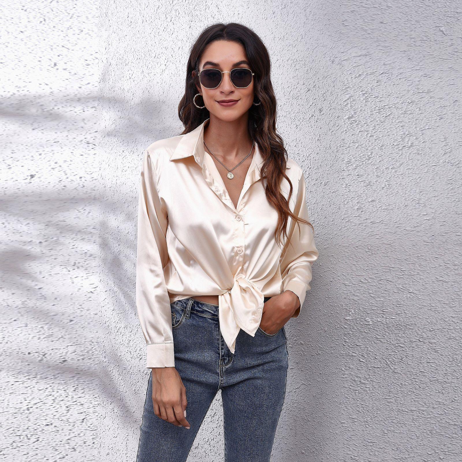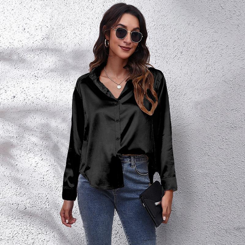 Camisa de Satén Popular de Tiro Real para Mujer Camisa de Satén Imitación Seda de Manga Larga Nueva Exportación Europea y Americana Ropa de Mujer Transfronteriza