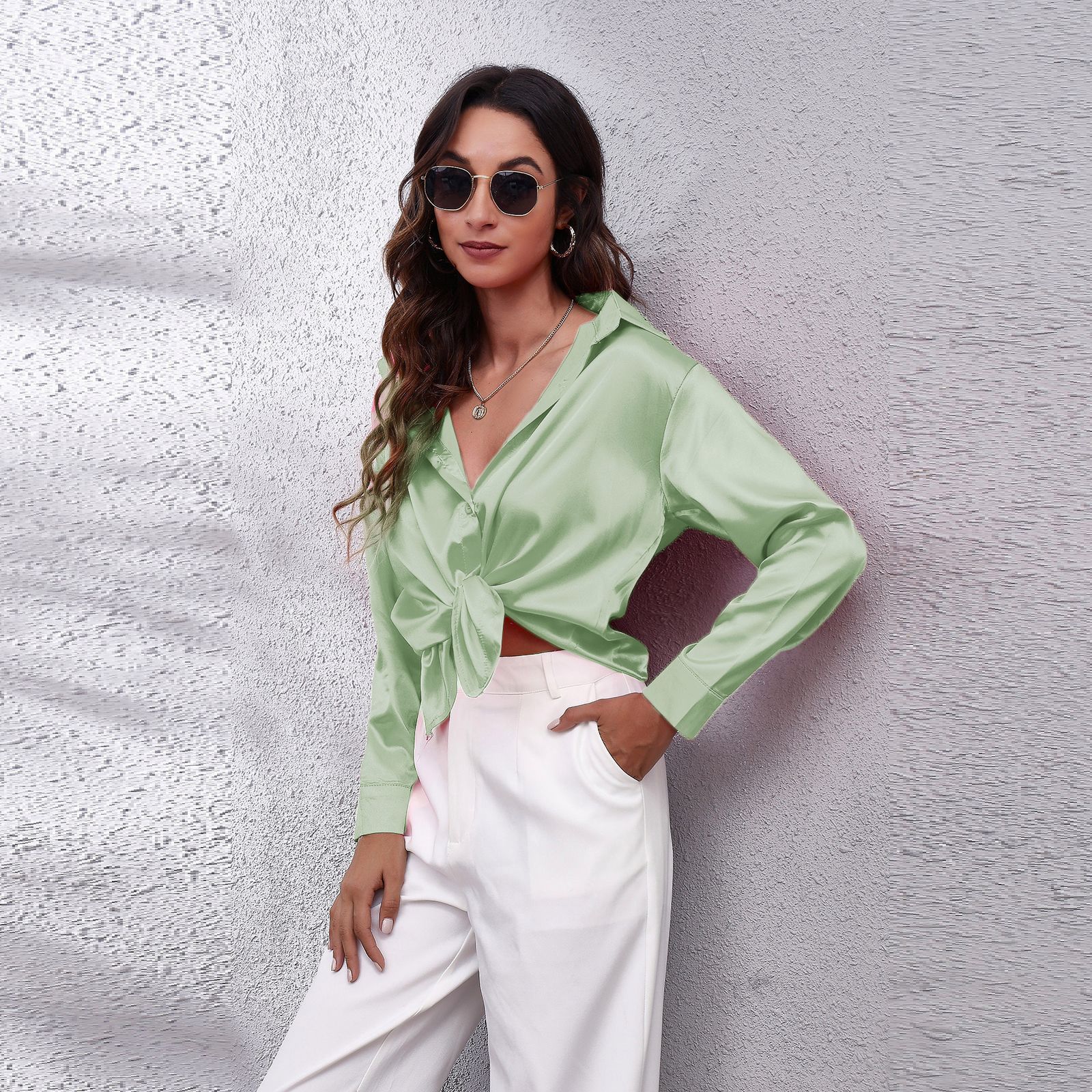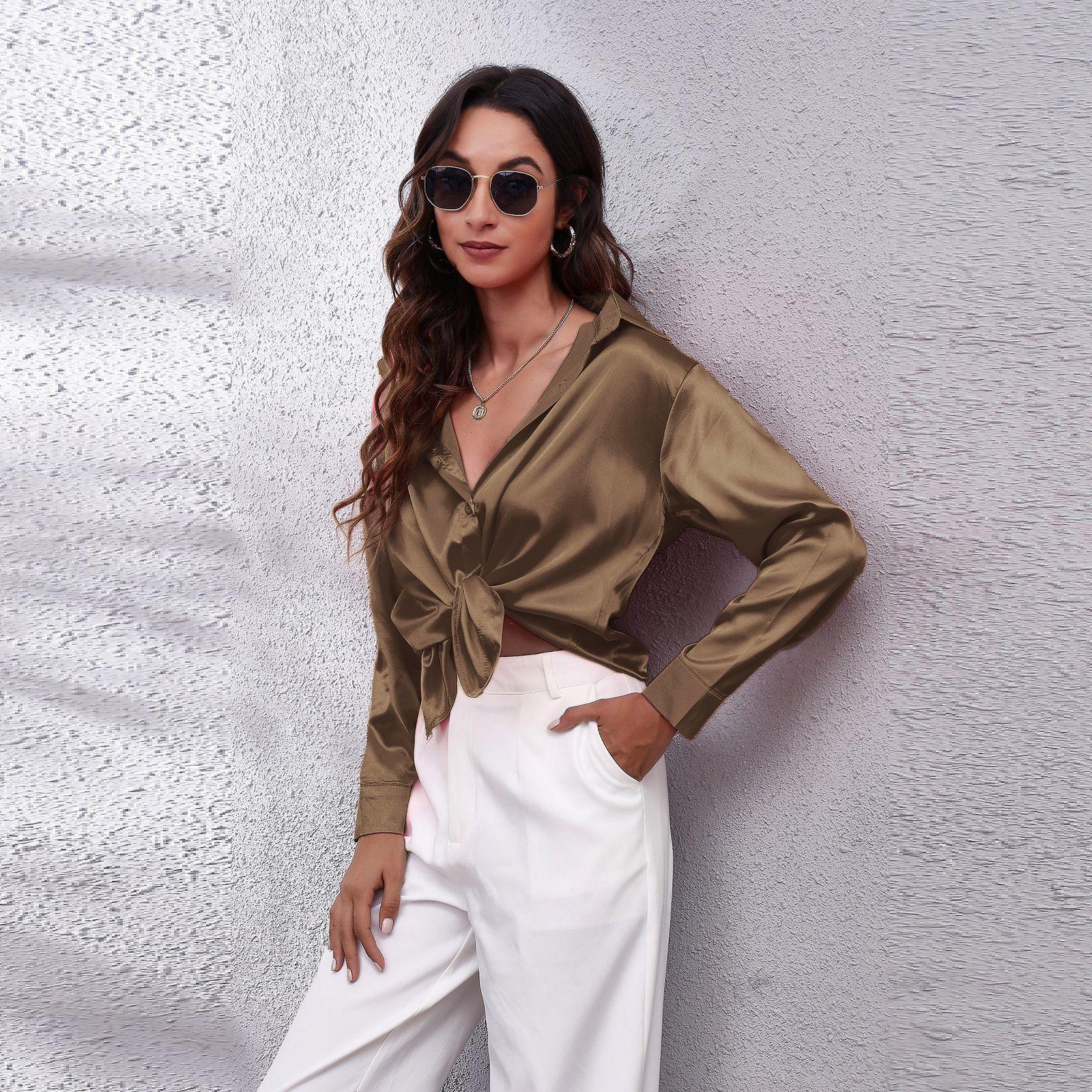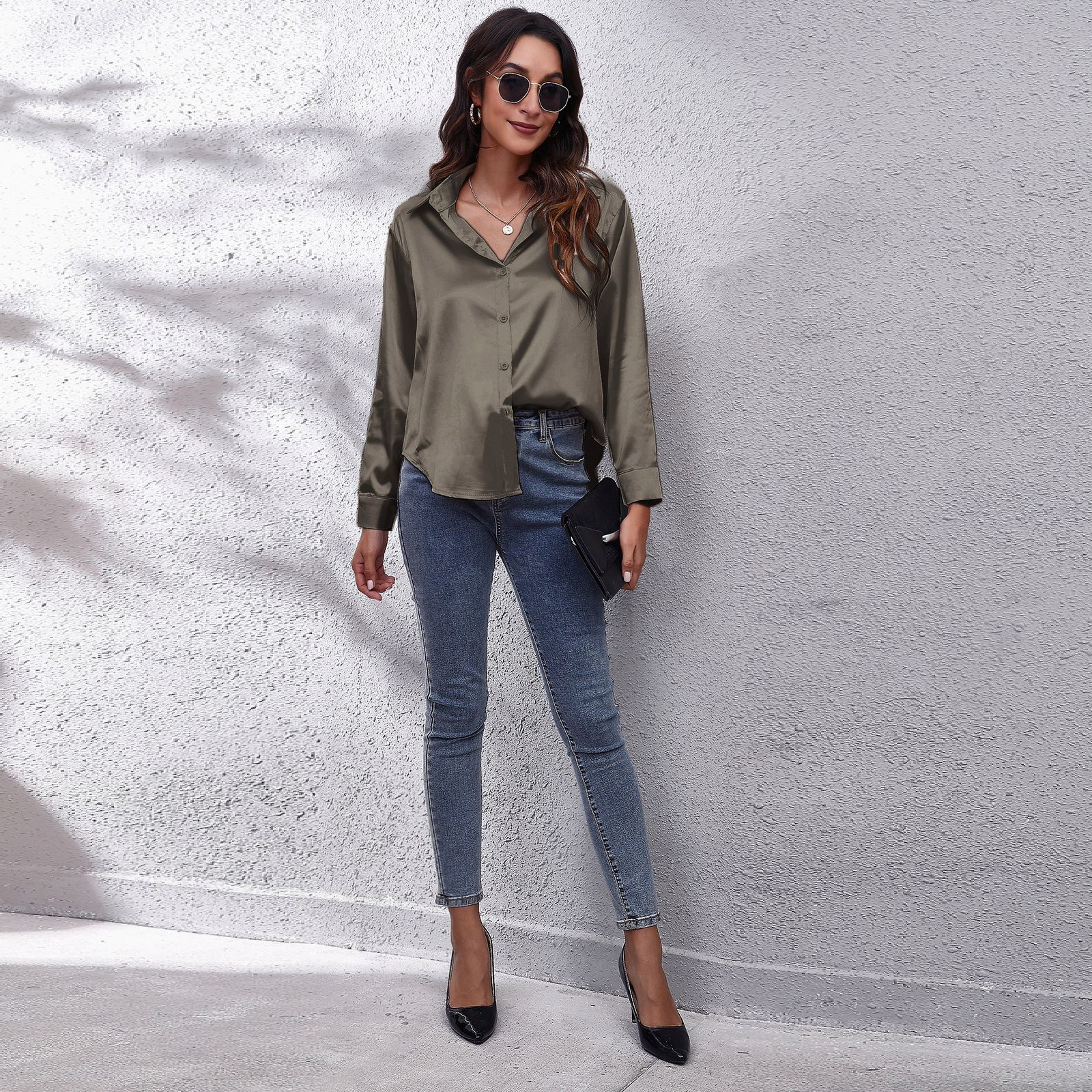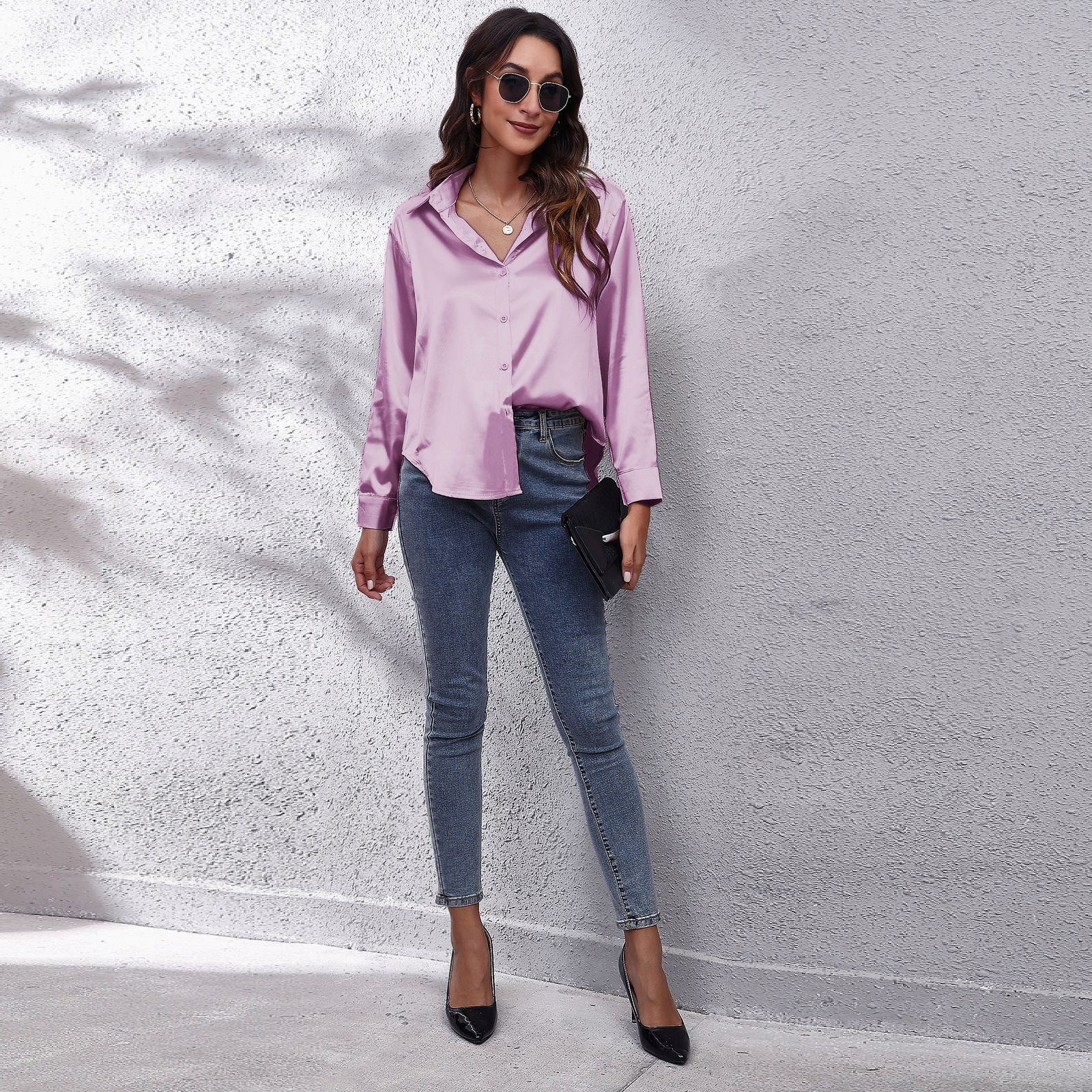 Camisa de Satén Popular de Tiro Real para Mujer Camisa de Satén Imitación Seda de Manga Larga Nueva Exportación Europea y Americana Ropa de Mujer Transfronteriza