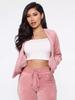 Amazon comercio exterior traje de moda de combinación de colores para mujer europea y americana sexy cintura descubierta sudadera con capucha cárdigan de contraste pantalones deportivos dos piezas