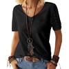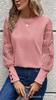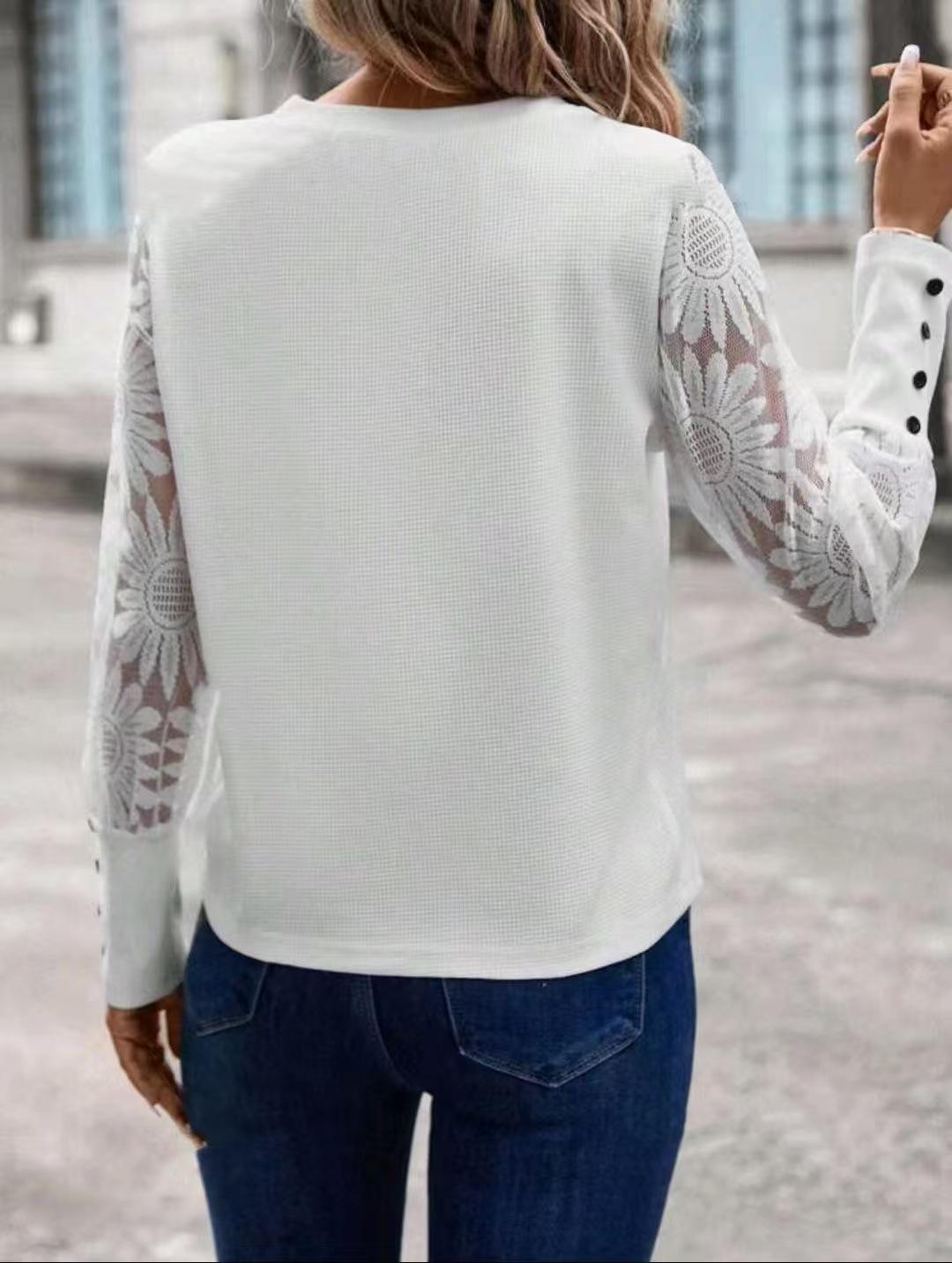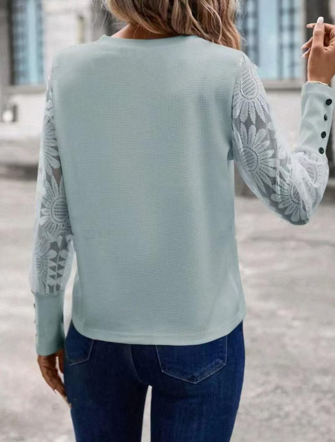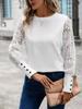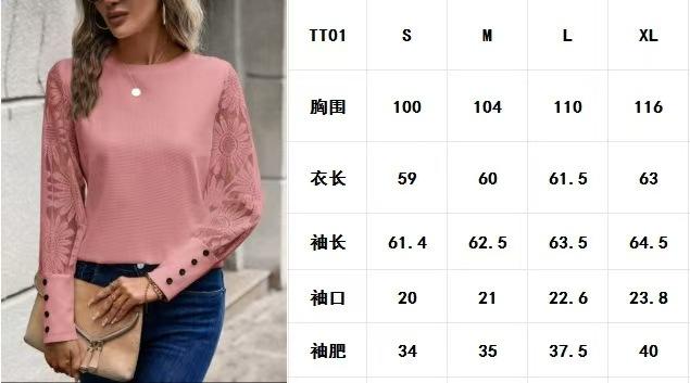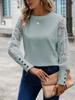 Europa y Estados Unidos transfronterizo Amazon nuevo cuello redondo hueco manga larga encaje costura cuello redondo camiseta manga larga top Tiktok