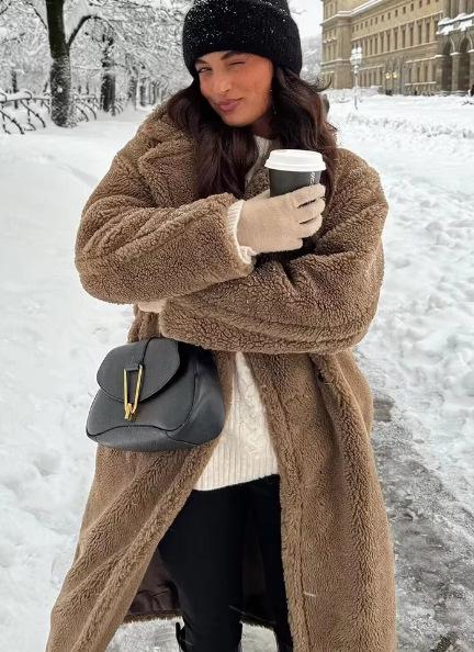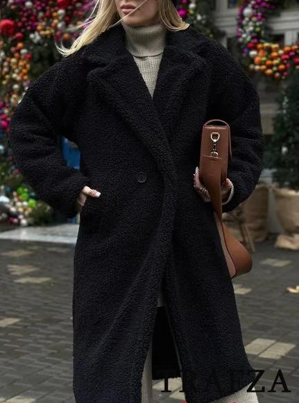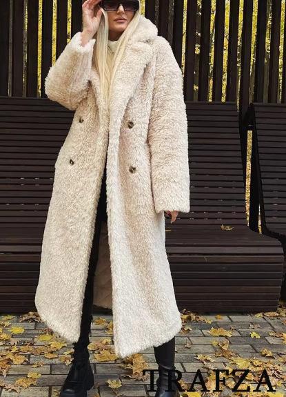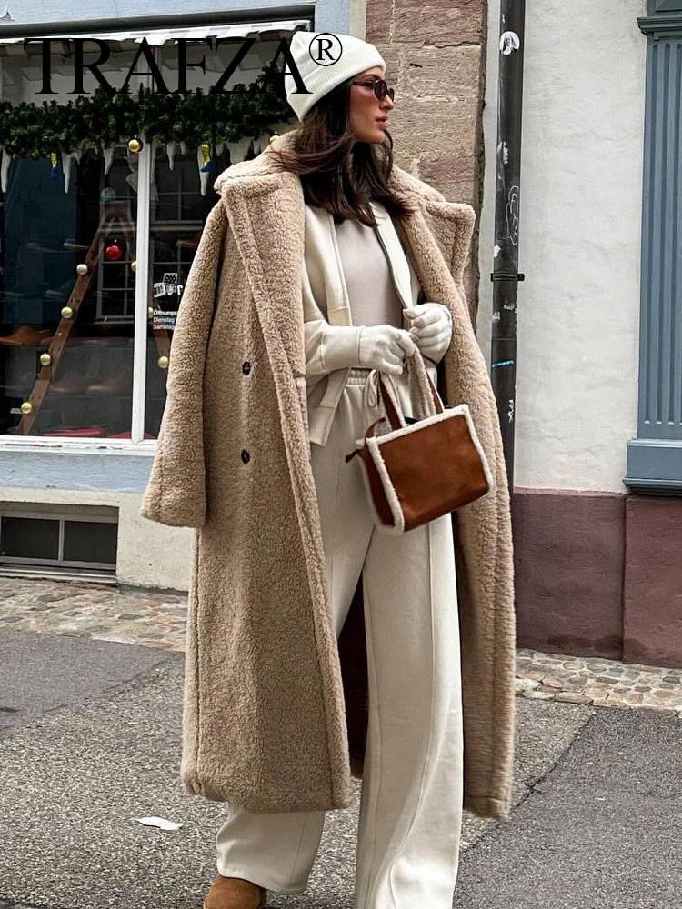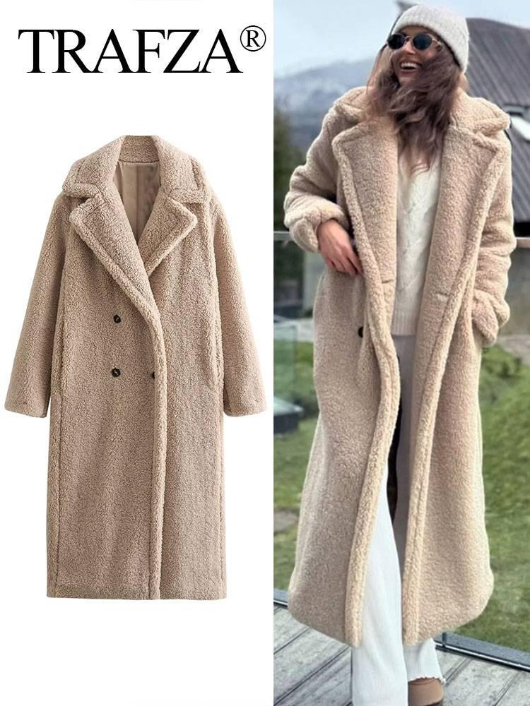 Abrigo Largo de Cachemira para Mujer Popular en Redes Sociales Estilo Europeo y Americano Invierno Cálido Doble Botonadura