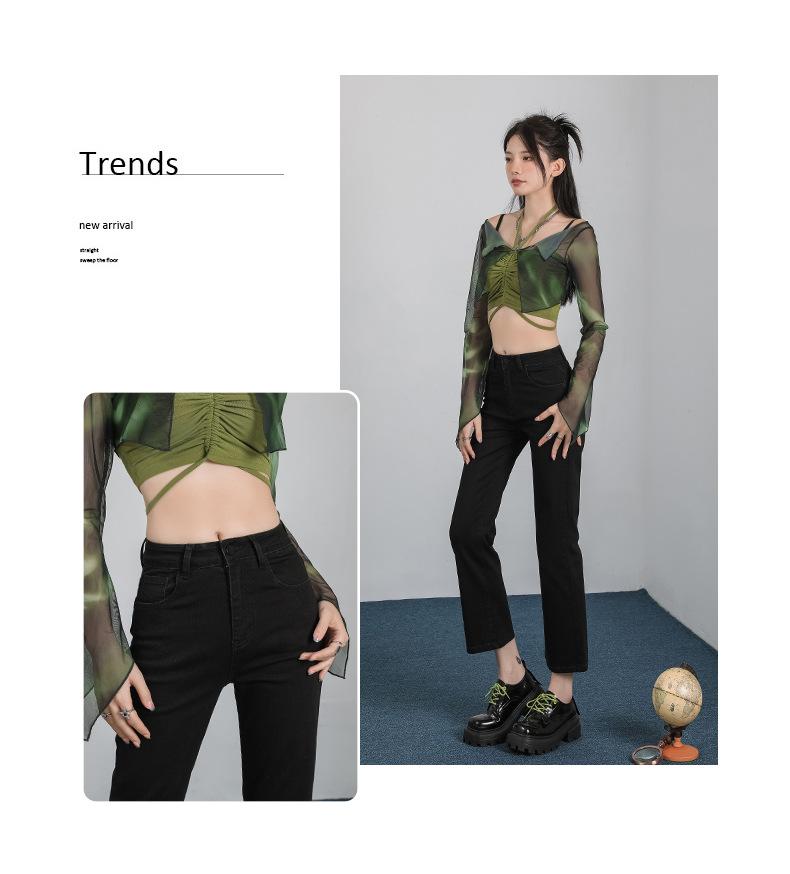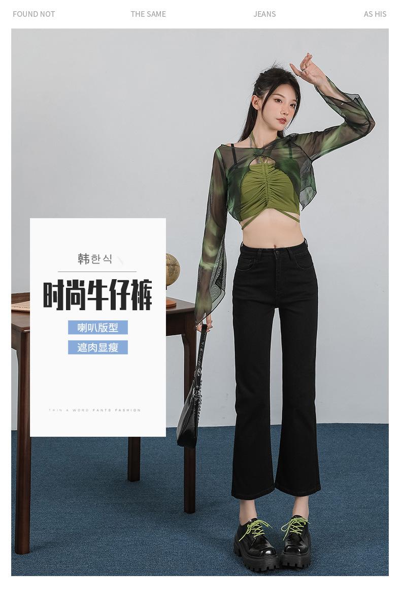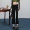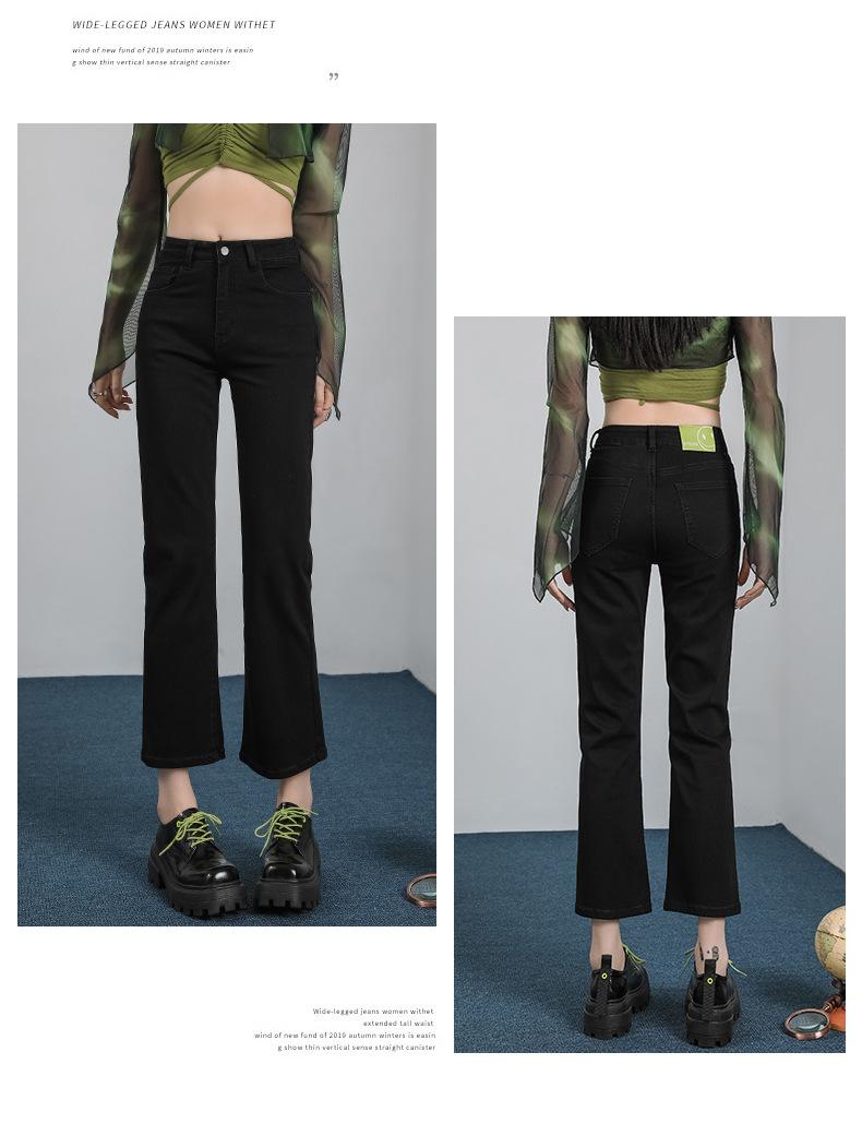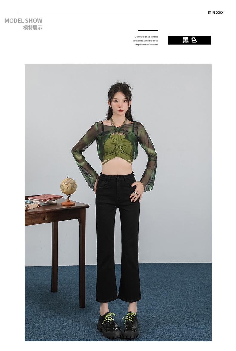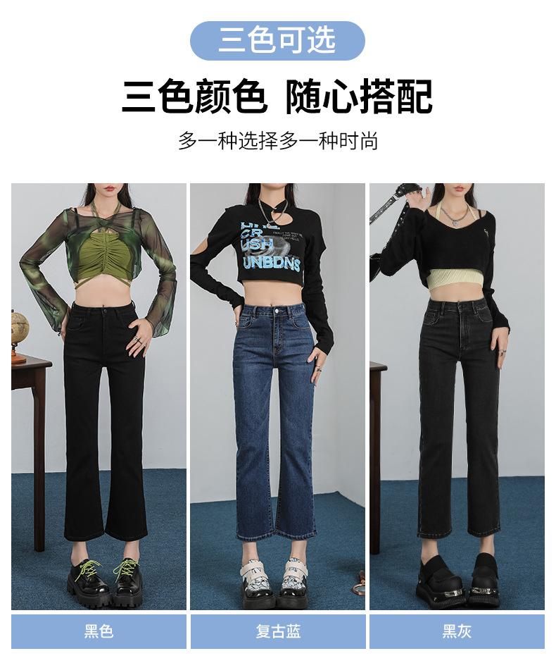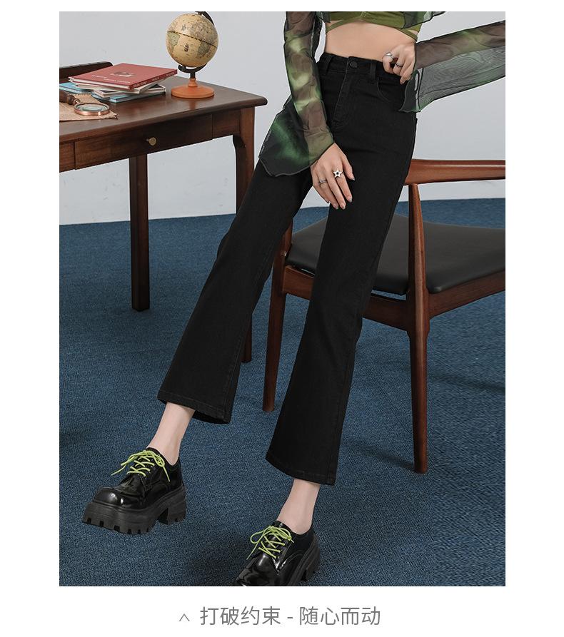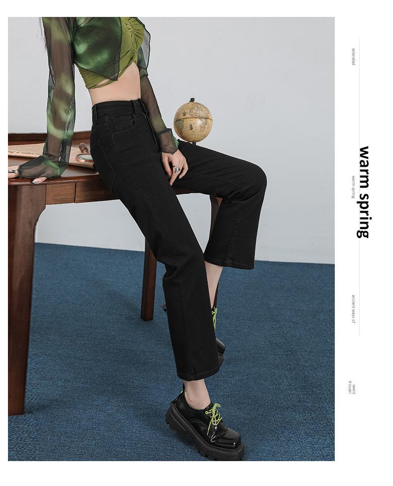 Vaqueros negros ajustados para mujer otoño 2023 Otoño Nuevos pantalones acampanados recortados adelgazantes de cintura alta elásticos