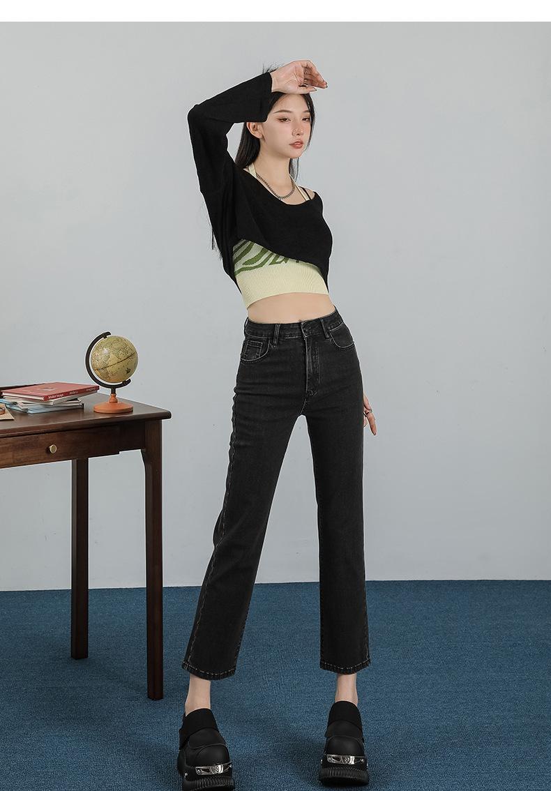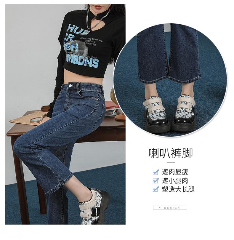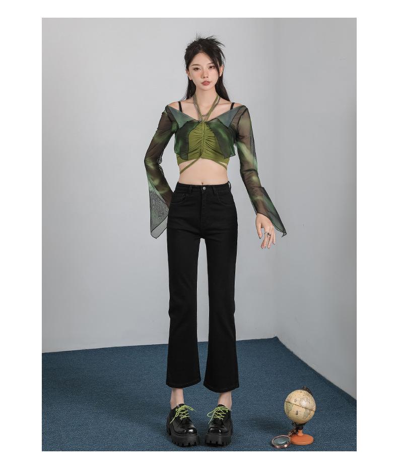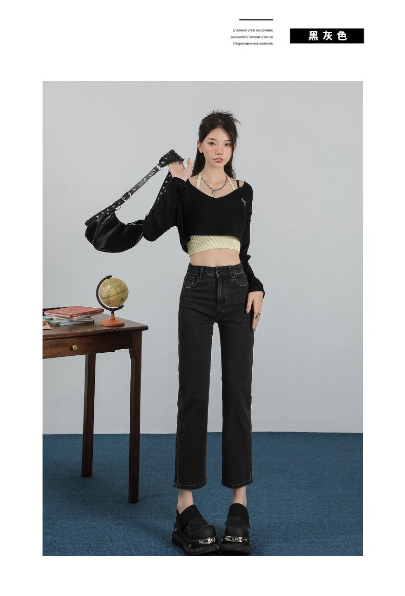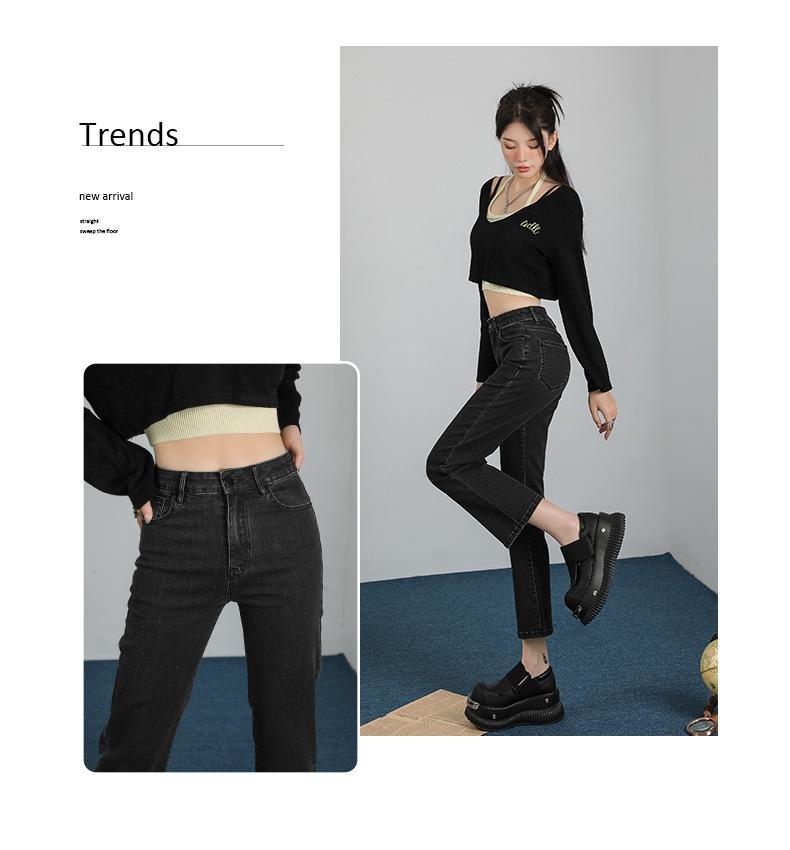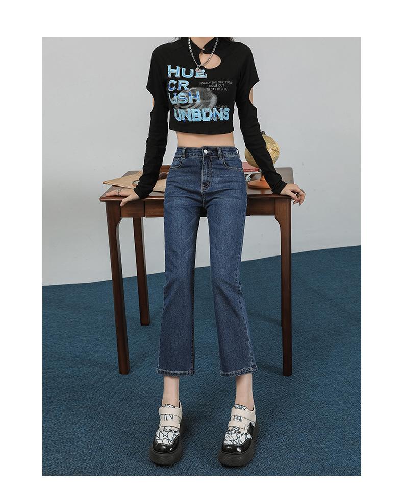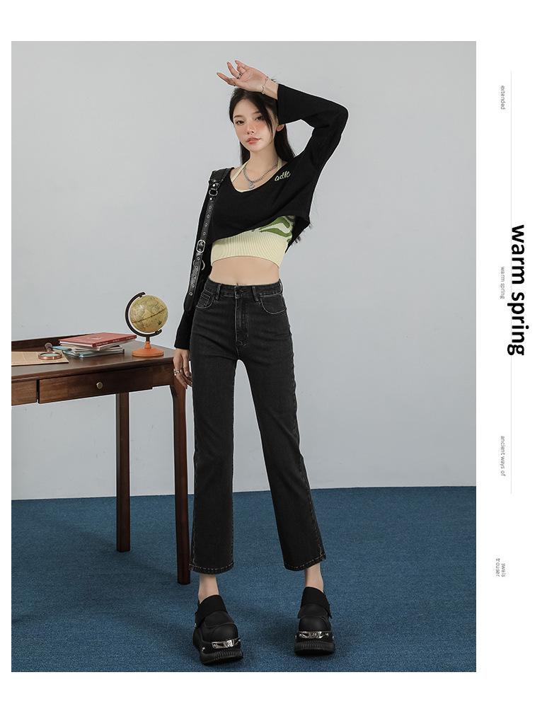 Vaqueros negros ajustados para mujer otoño 2023 Otoño Nuevos pantalones acampanados recortados adelgazantes de cintura alta elásticos