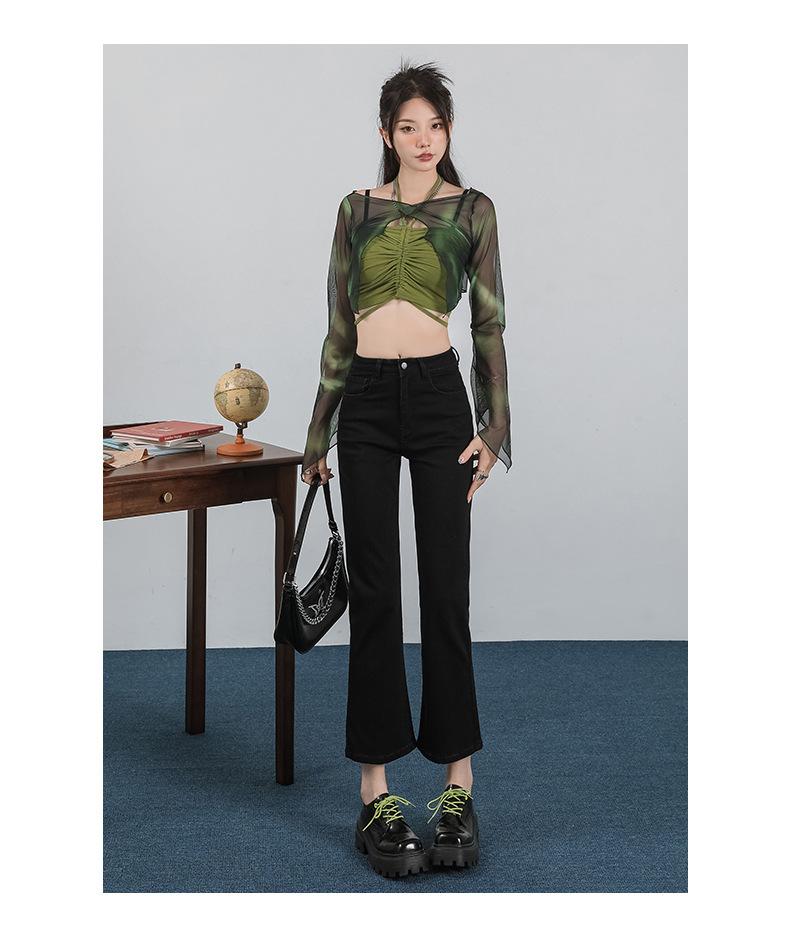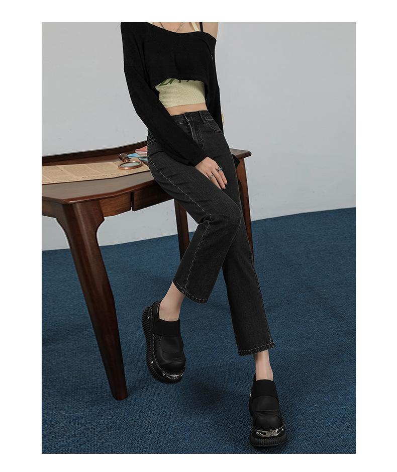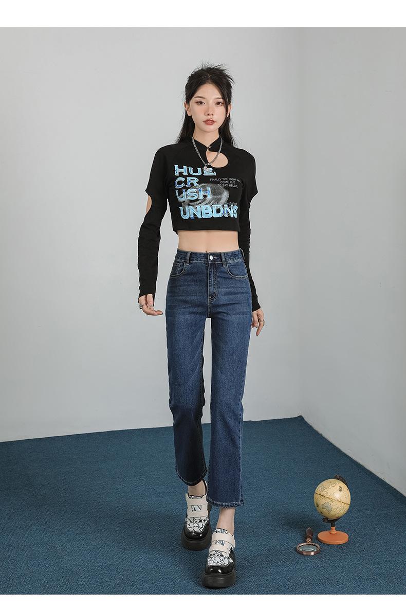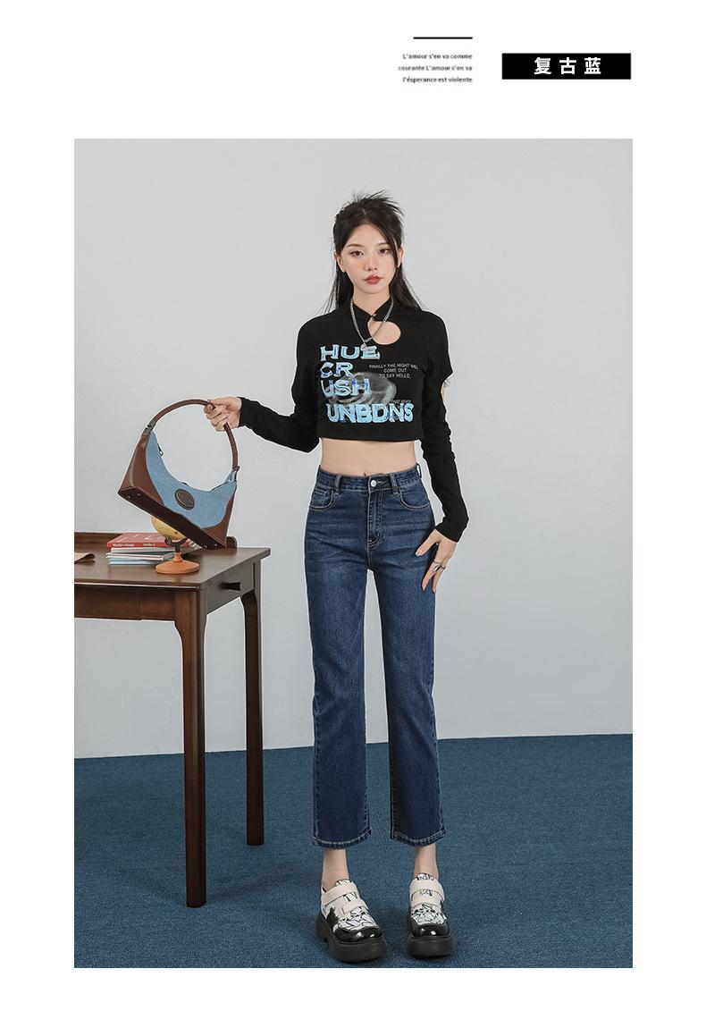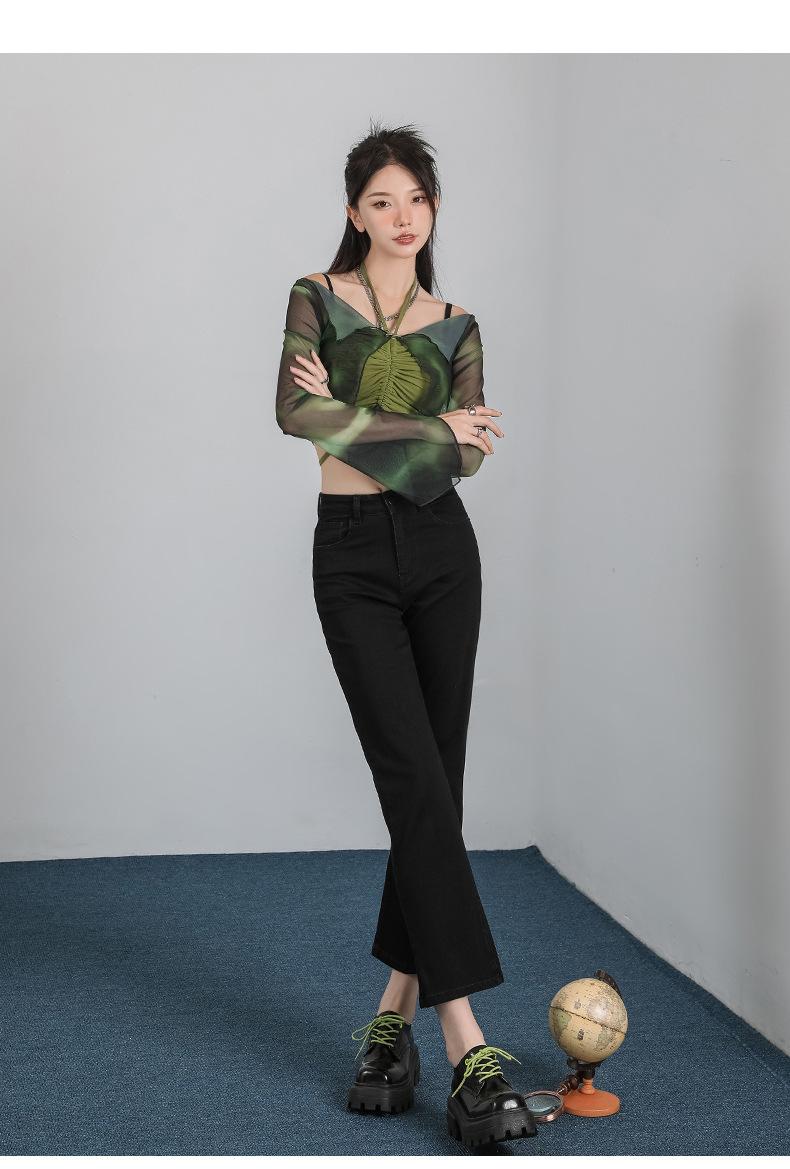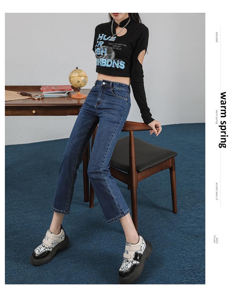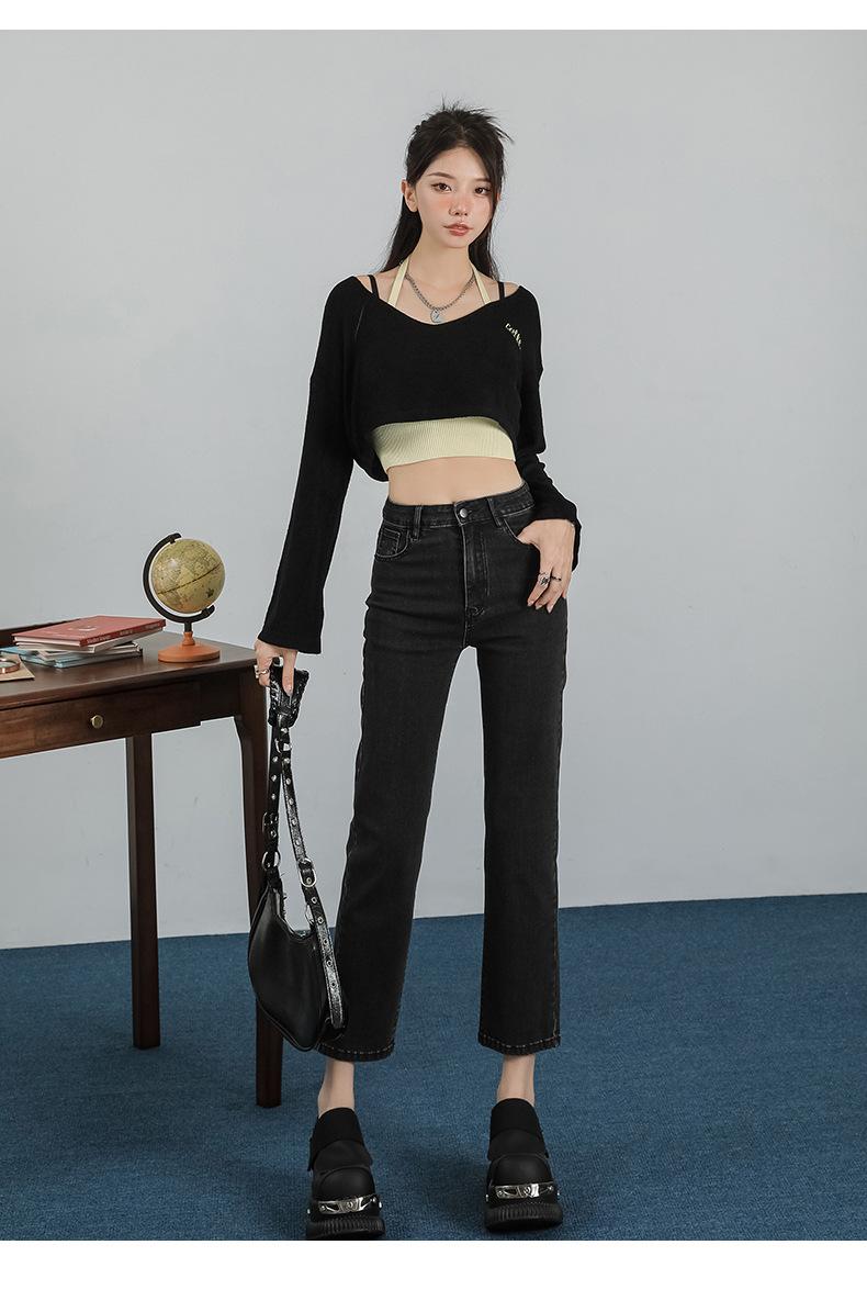 Vaqueros negros ajustados para mujer otoño 2023 Otoño Nuevos pantalones acampanados recortados adelgazantes de cintura alta elásticos