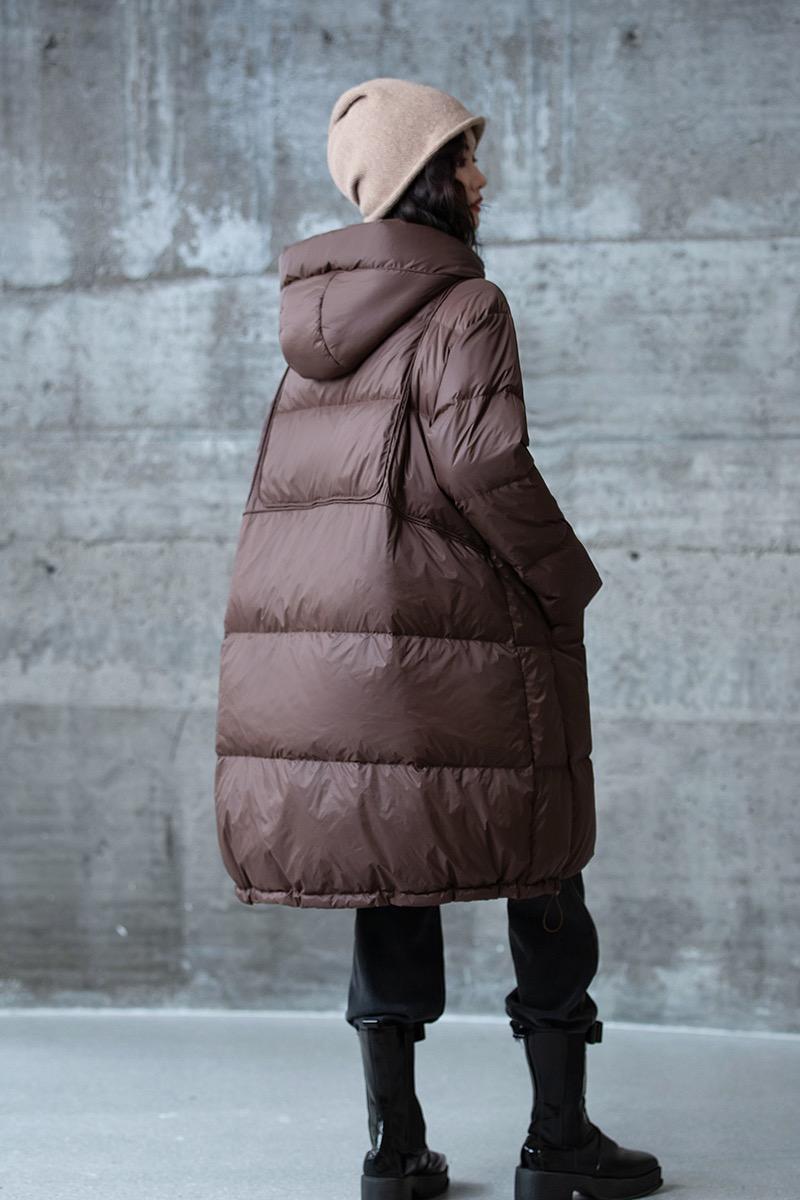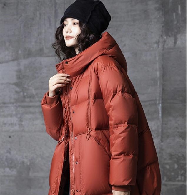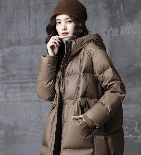Compra Producto de recogida 2023 Invierno nueva chaqueta de plumón de color liso con capucha de longitud media y bolsillo grande, chaqueta informal de plumón de pato blanco al por mayor en Joom.pro