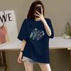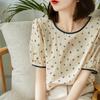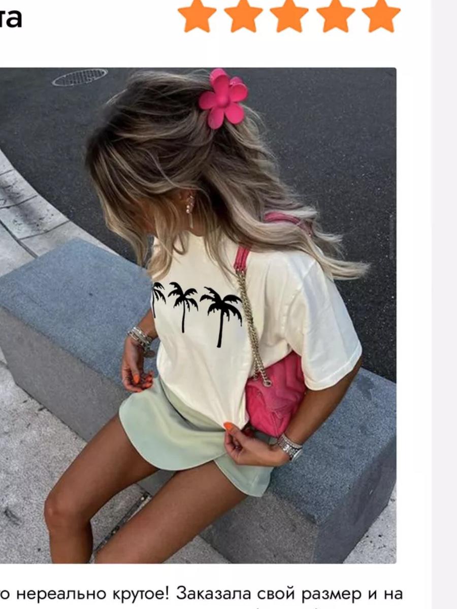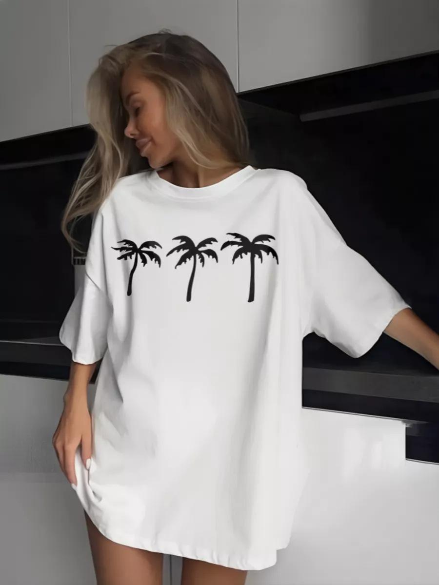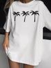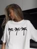 Camiseta de verano 100% algodón de manga corta y cuello redondo para mujer, diseño moderno de calle, con estampado de cocoteros, top holgado y adelgazante.