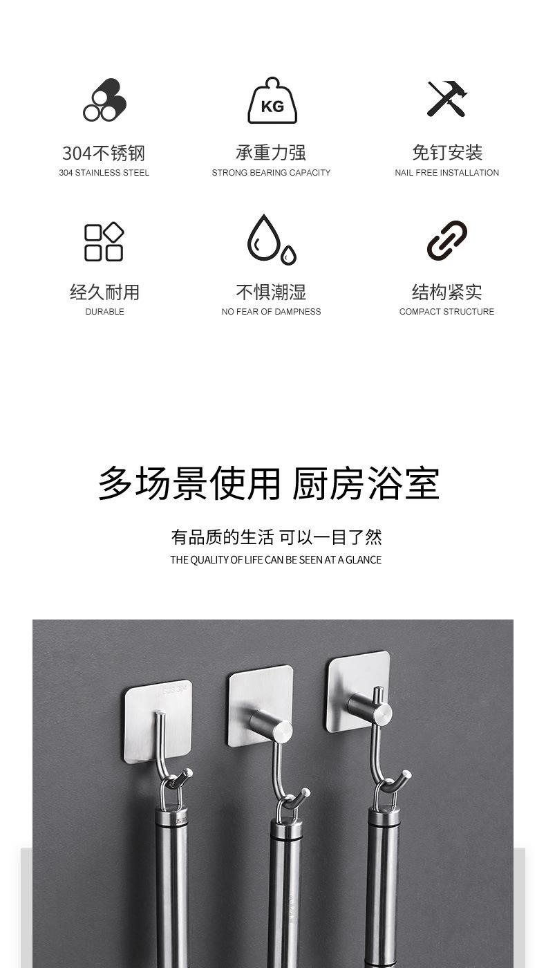 Gancho especial transfronterizo de acero inoxidable 304 para baño, sin perforaciones, para colgar abrigos, puertas de inodoro, etc.