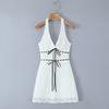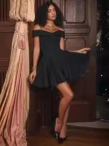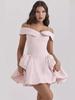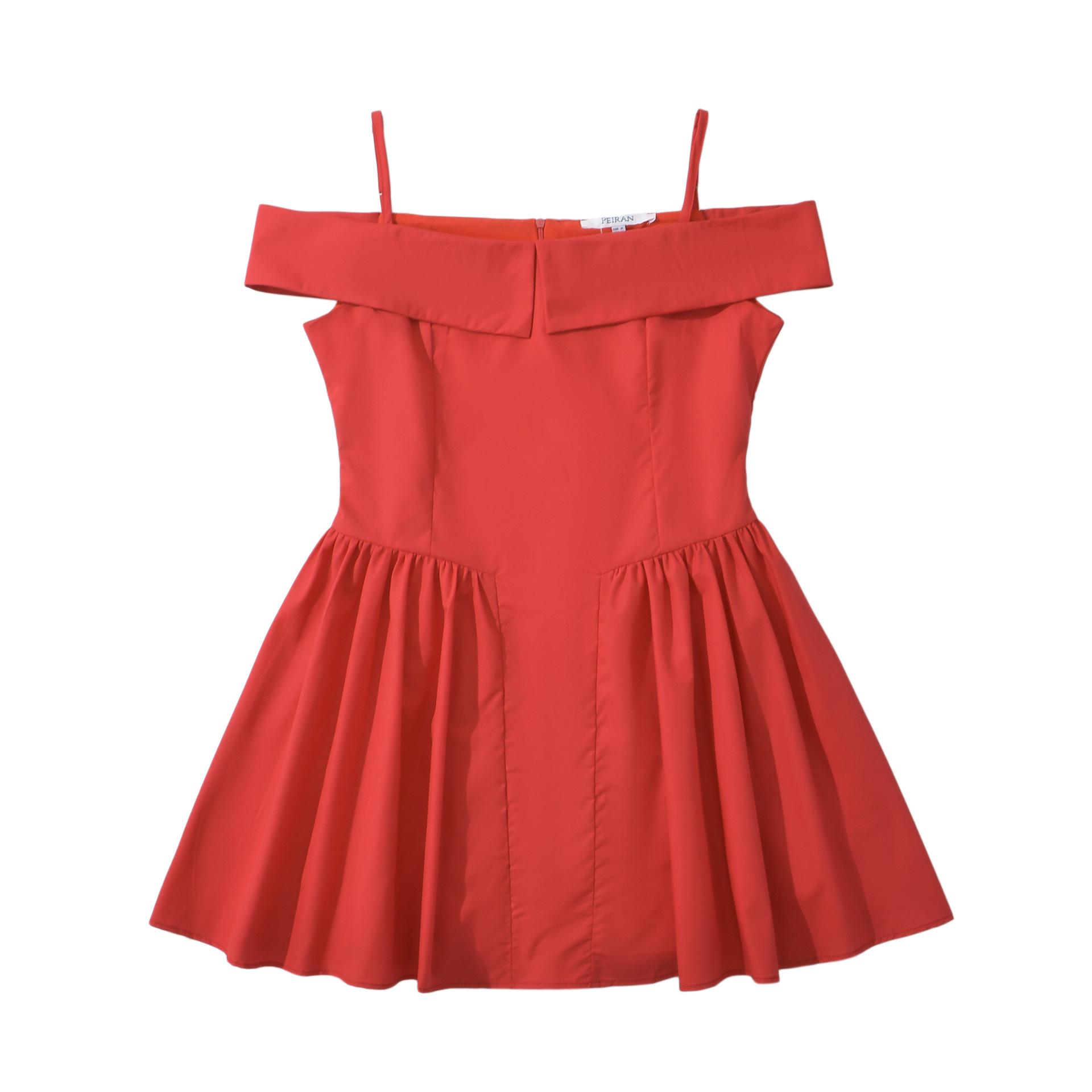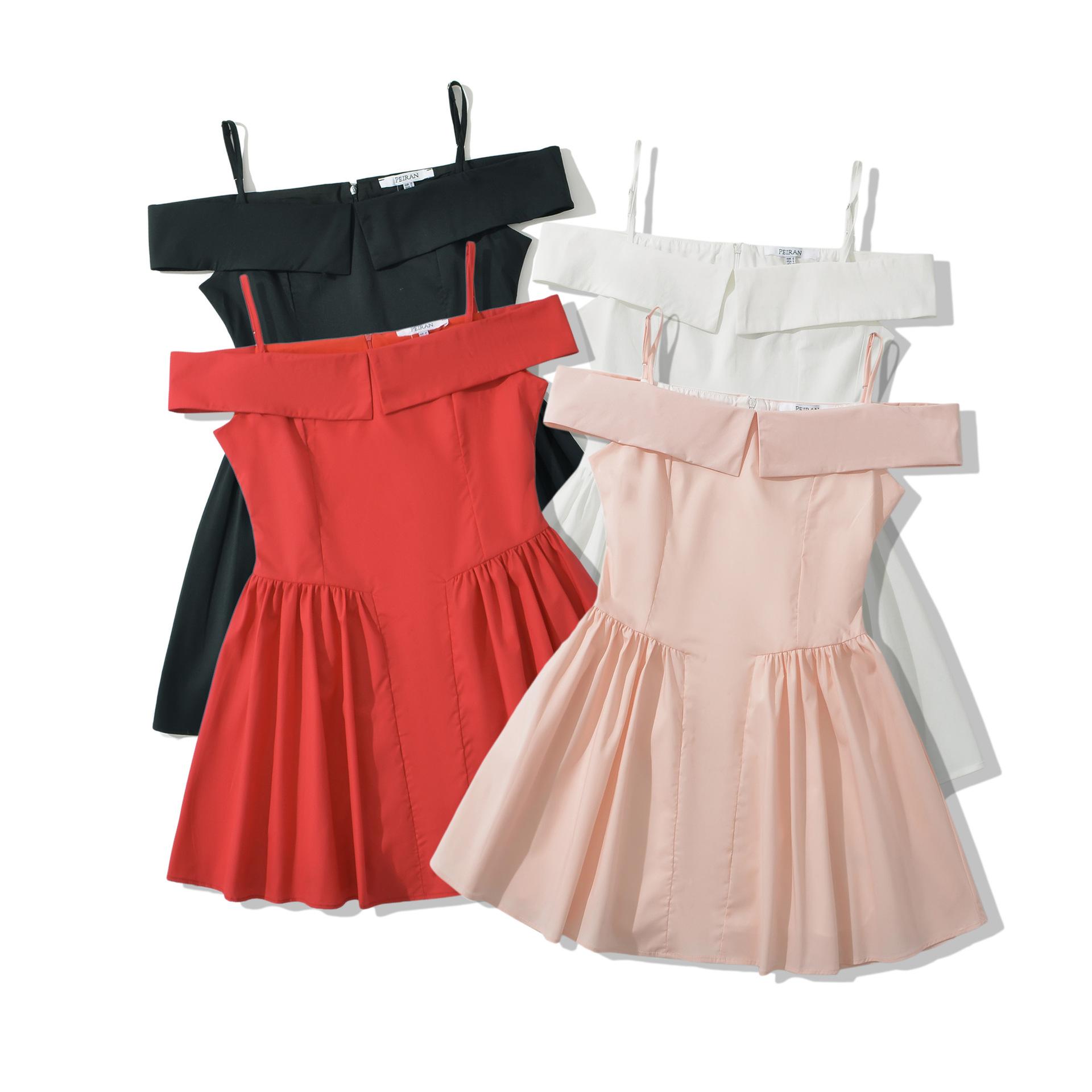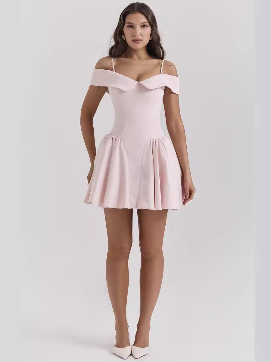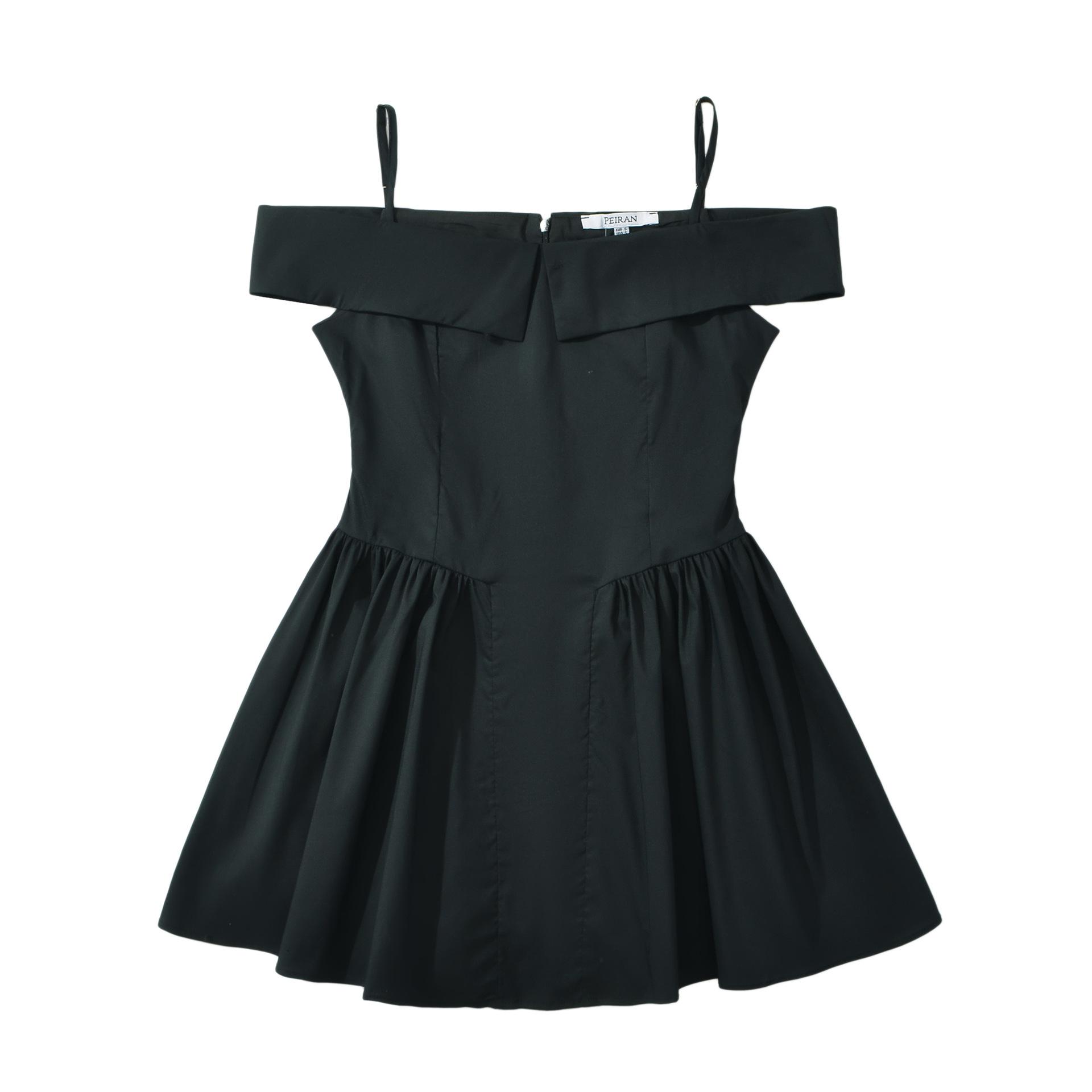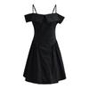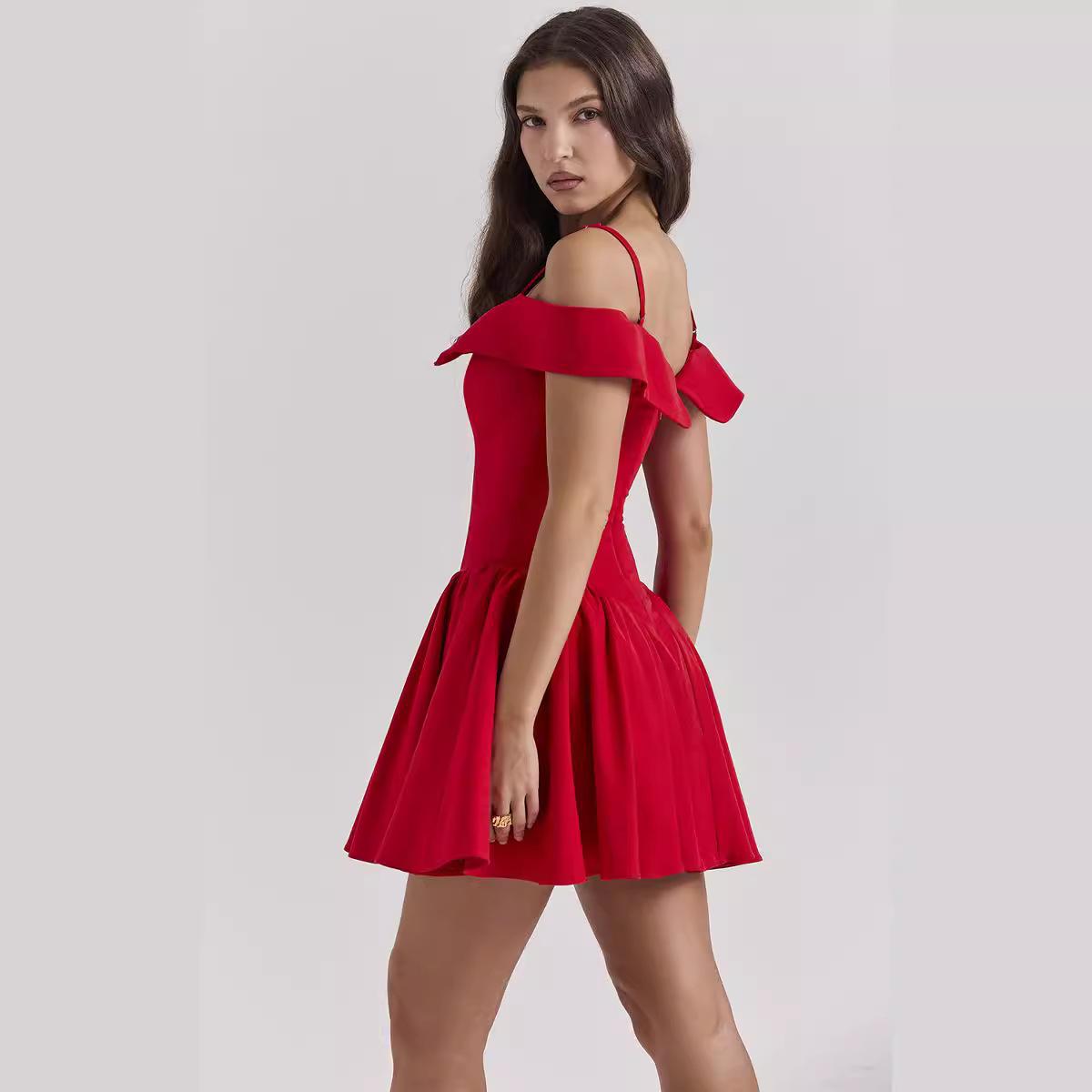 Falda francesa de alta gama, sexy, con solapa y un solo hombro, con tirantes y cintura plisada, aspecto estilizado.