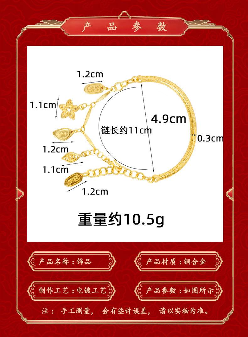 Nueva pulsera de oro Sha antiguo de estilo chino, marca Palace Sense Star, con borlas, media pulsera para mujer, pequeña, de larga duración, sin color, joyería de mano.