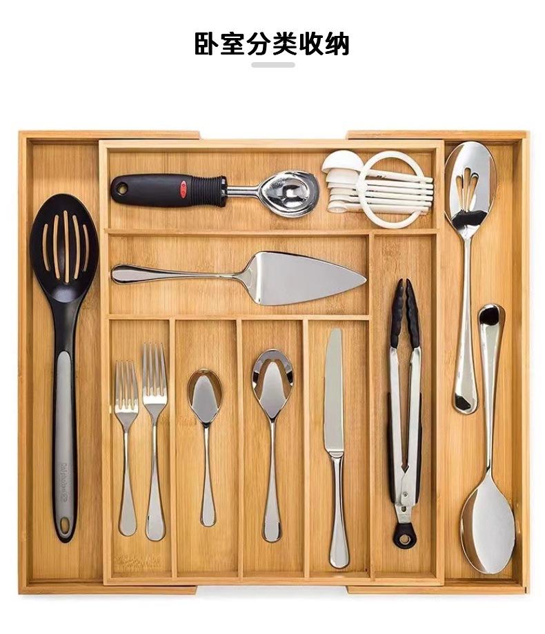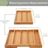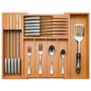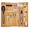 Caja de Almacenamiento Expandible de Bambú para Cajón de Cocina, Cesta Retráctil para Cubiertos, Cuchillos y Tenedores, Caja Plana