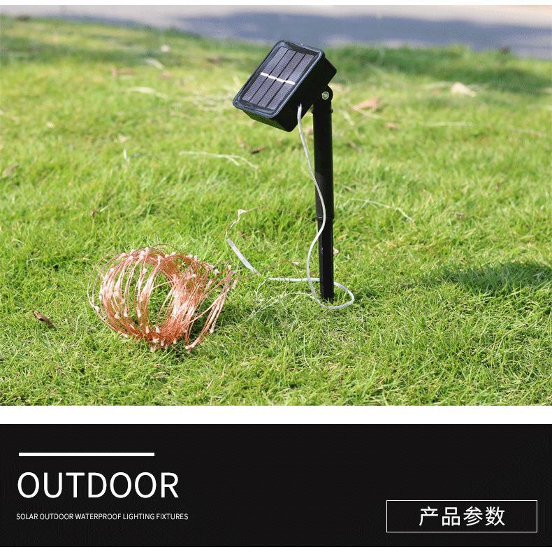 Cadena de lámparas solares de alambre de cobre para exteriores, lámpara estrellada impermeable, decoración para patio, camping, cadena de lámparas LED estrelladas de alambre de cobre
