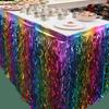 Falda de mesa con borlas de cortina de lluviaBanner de falda de mesa desechableDecoración para mesa de fiesta de boda, cumpleaños o vacacionesusarBienes