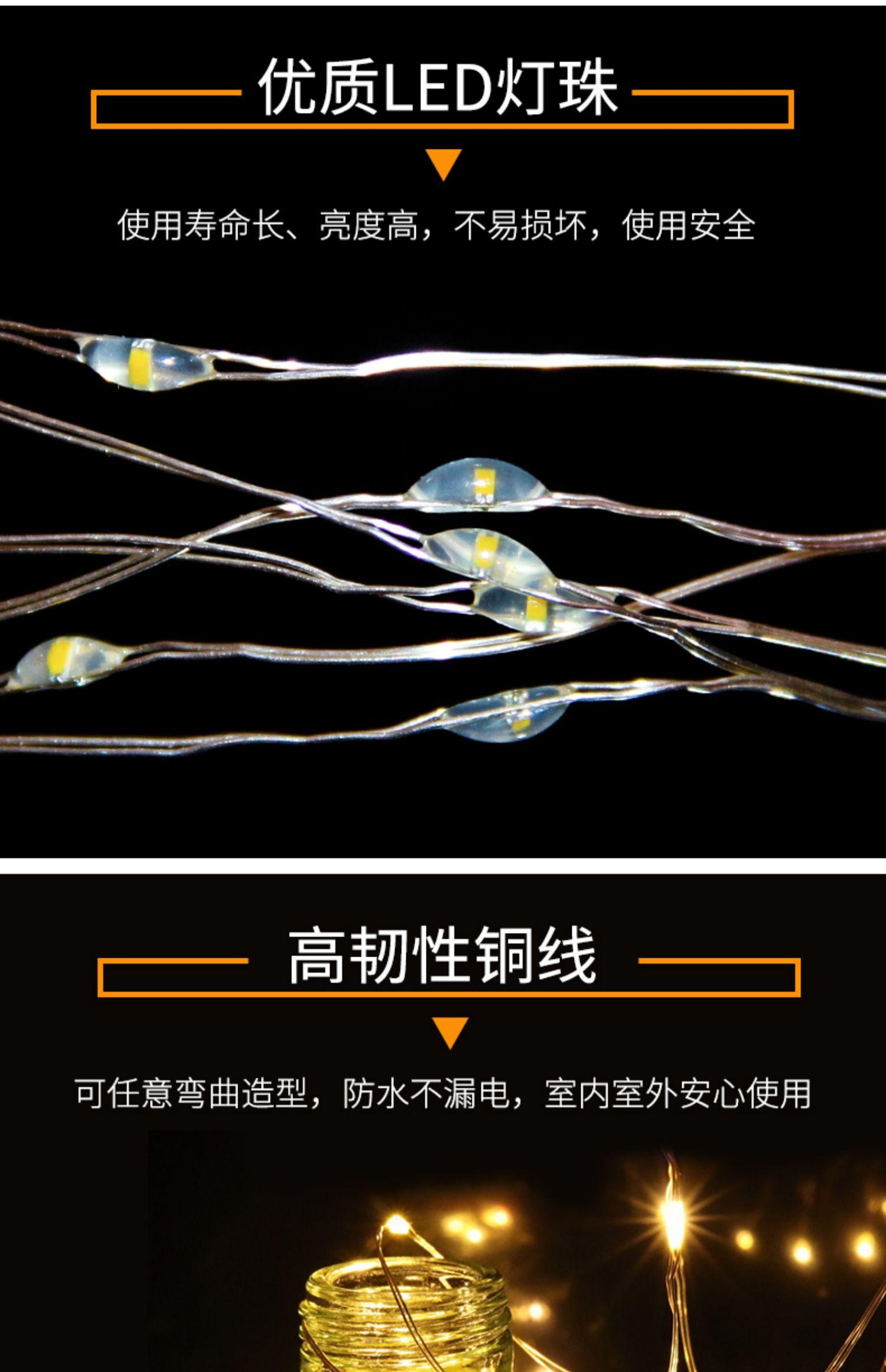 Lámpara LED de alambre de cobre, lámpara solar de alambre de cobre, cadena de luces para exteriores, lámpara impermeable, lámpara decorativa para patio, festival de Navidad, venta directa de fábrica